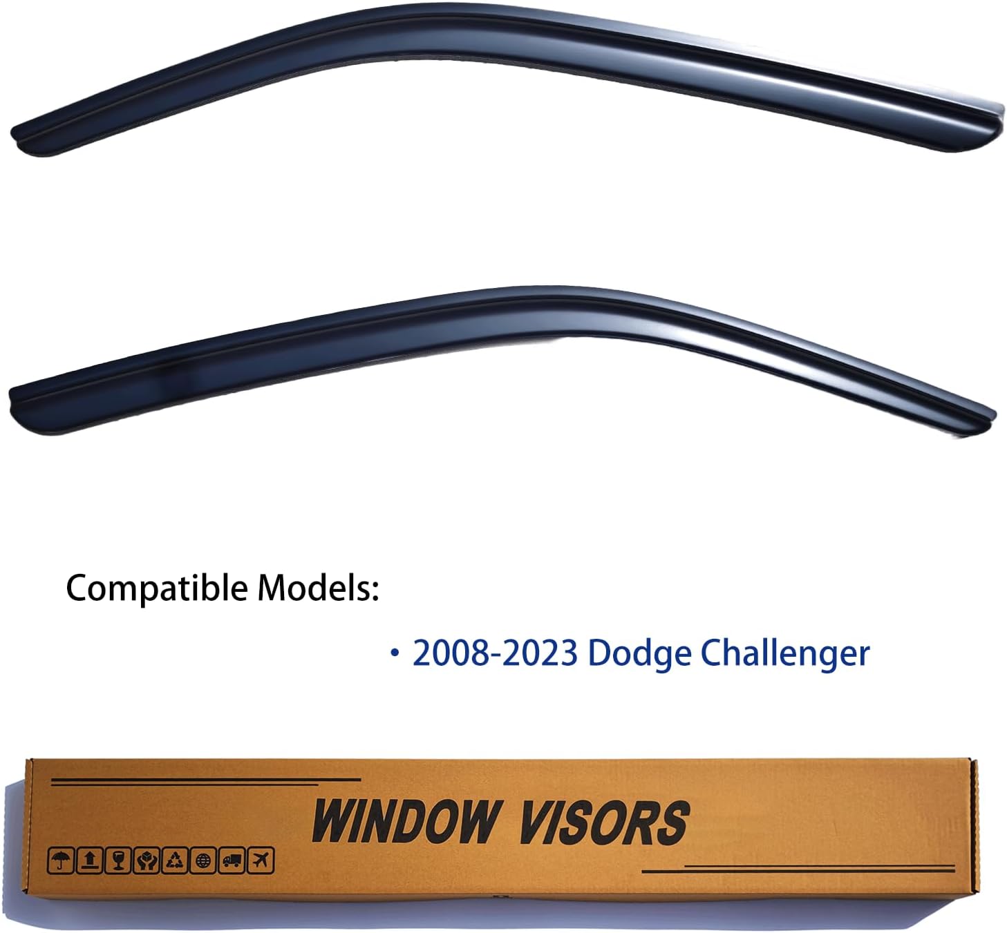 - 【Fitment】-YLSCOO Window Visors Compatible with Dodge Challenger 2008 2009 2010 2011 2012 2013 2014 2015 2016 2017 2018 2019 2020 2021 2022 2023. Note: Please check the display picture to see the cab difference and make sure your truck is the correct cab that this item will fit.