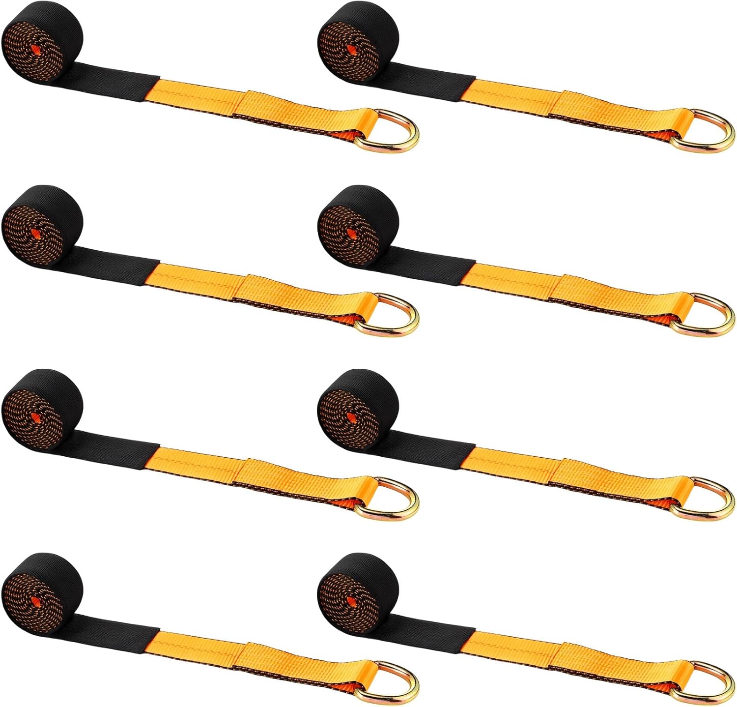 8 Pack 2'' X 8ft Tow Truck Straps Lasso Wheel Lift Straps Lasso Tow Strap with D Ring 11, 000 Lbs Break Strength Auto Tie Down Auto Hauler for Trailer Truck Tie