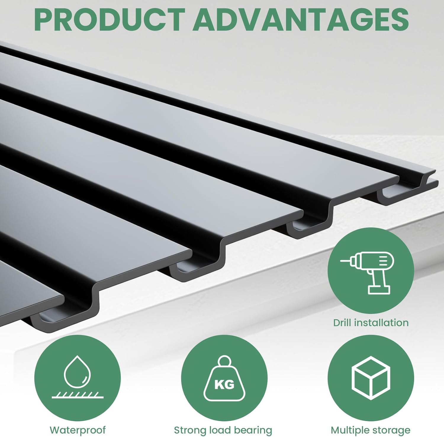 - Durable and Reliable Slat Wall Panels: Made from premium PVC, our slat wall panels are built to withstand tough conditions. The material offers fire resistance, waterproofing, and resistance to fading, cracking, and peeling. With a sleek finish and minimal upkeep, our slat wall panels provide superior strength and reliability for your garage.