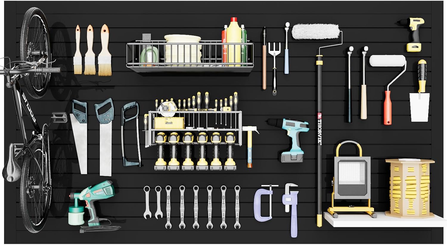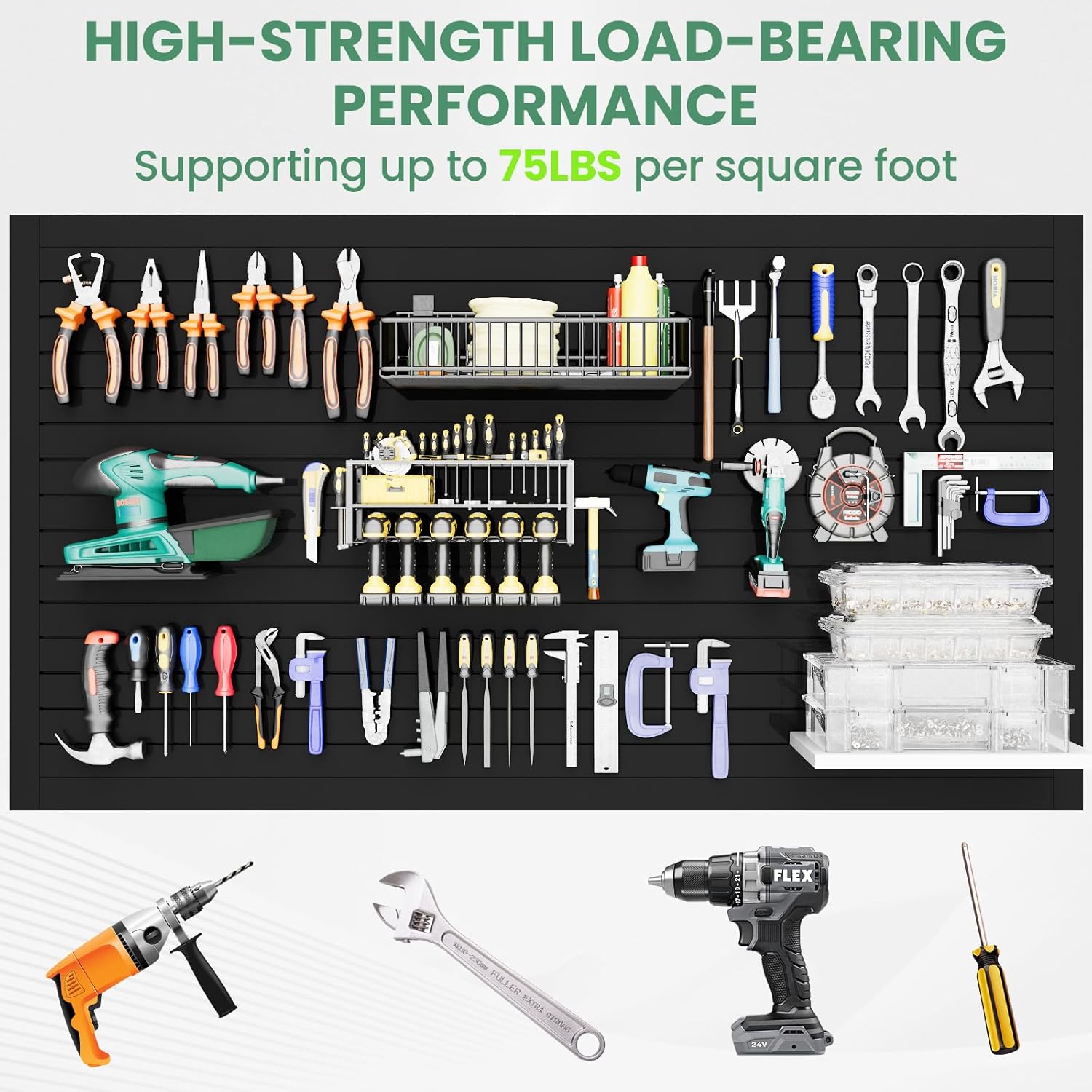 - Wide Range of Applications: It is not only suitable for garages, but also for workshops, tool sheds, laundry rooms, basements, etc. Whether you're a auto-enthusiast,garage owner,workshop owner,or just looking to declutter your space,our slat wall system is the perfect solution for you to store tools,stay organized and display products.