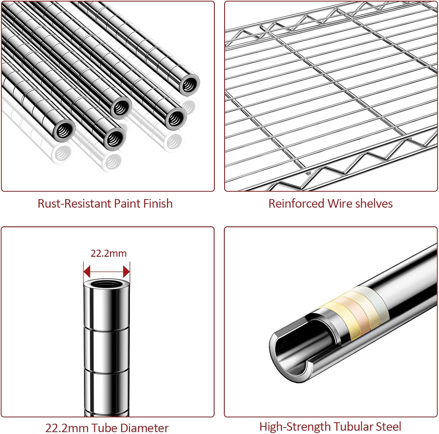 IZEUK 5-Tier Storage Shelving Unit with Wheels, Adjustable Heavy Duty Steel Wire Rack Organizer (Chrome, 17.7" D x 47.2" W x 76.7" H, 1750 lbs Capacity) for Garage, Kitchen, Pantry, Laundry, Basement