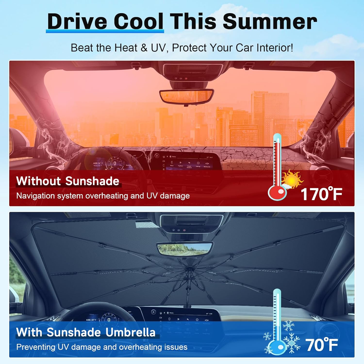 - 4. Practical & Scratch-Free: This 2025 Equinox EV Sunshade Umbrella comes with a silicone sleeve to safeguard your dashboard and a flexible TPE handle for scratch-free installation. A must-have for keeping your Equinox EV cool and UV-protected every day