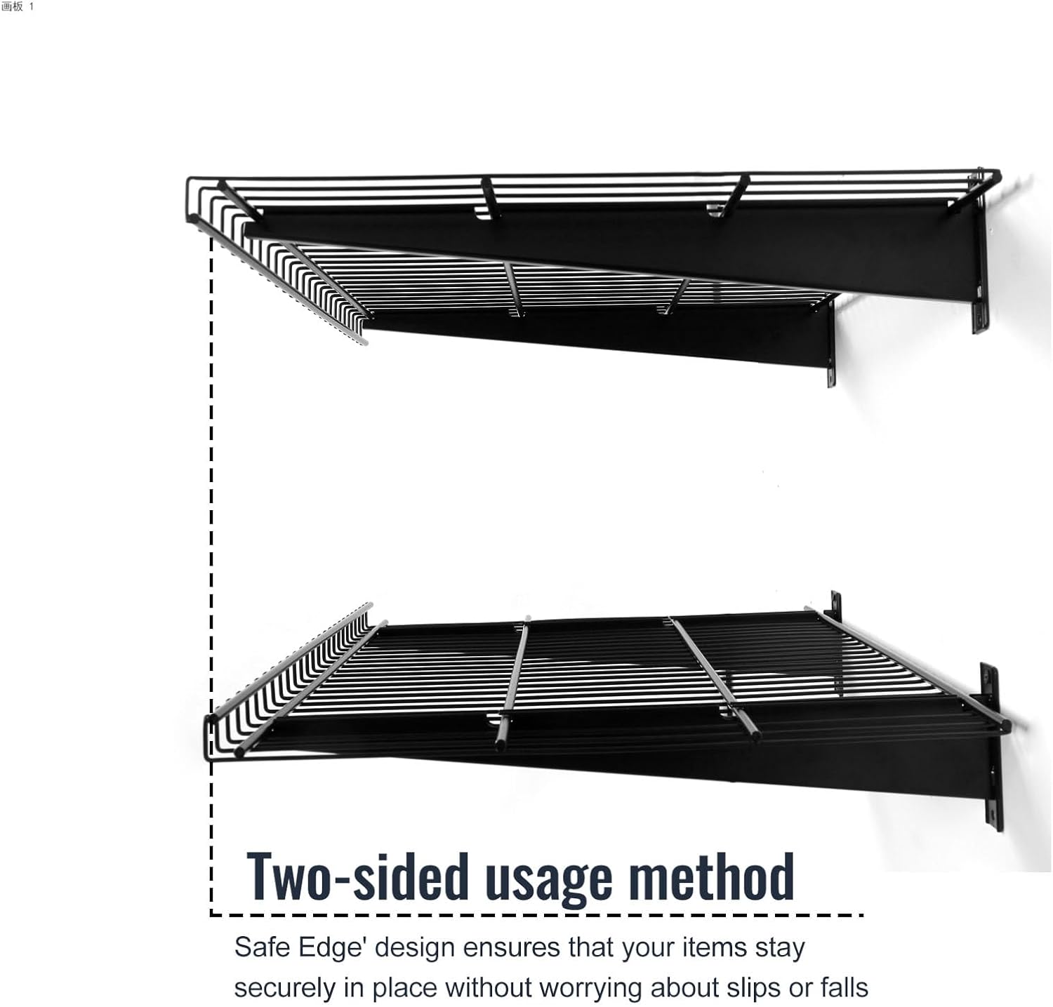 - Heavy-Duty Steel Grid Design:Crafted from industrial-grade steel, this heavy-duty wall shelf supports up to 50lbs, ideal for garage shelving wall mounted or other areas like laundry rooms and kitchens.