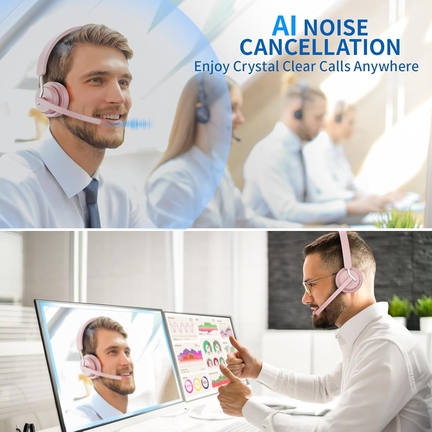 - Call reminder & Voice Assistant: Wireless headset for work uses Bluetooth V5.3 technology, which has faster and more stable connection speeds. Call reminder helps you-not to miss any important calls, even during busy meetings; voice assistant helps you create calendar events, music pause, real-time memo generation, retrieve file etc according to your needs.