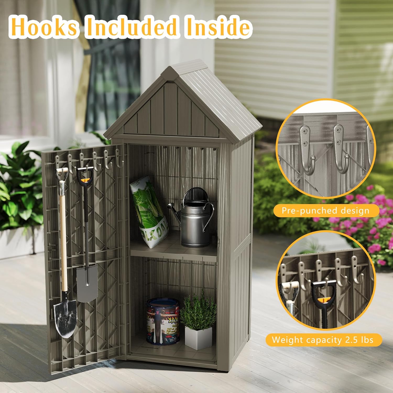 Storage Shed Outdoor Lockable,Waterproof Resin Garden Tool Shed, Heavy-Duty Weather-Resistant Cabinet for Patio, Backyard, or Garage (Grey)