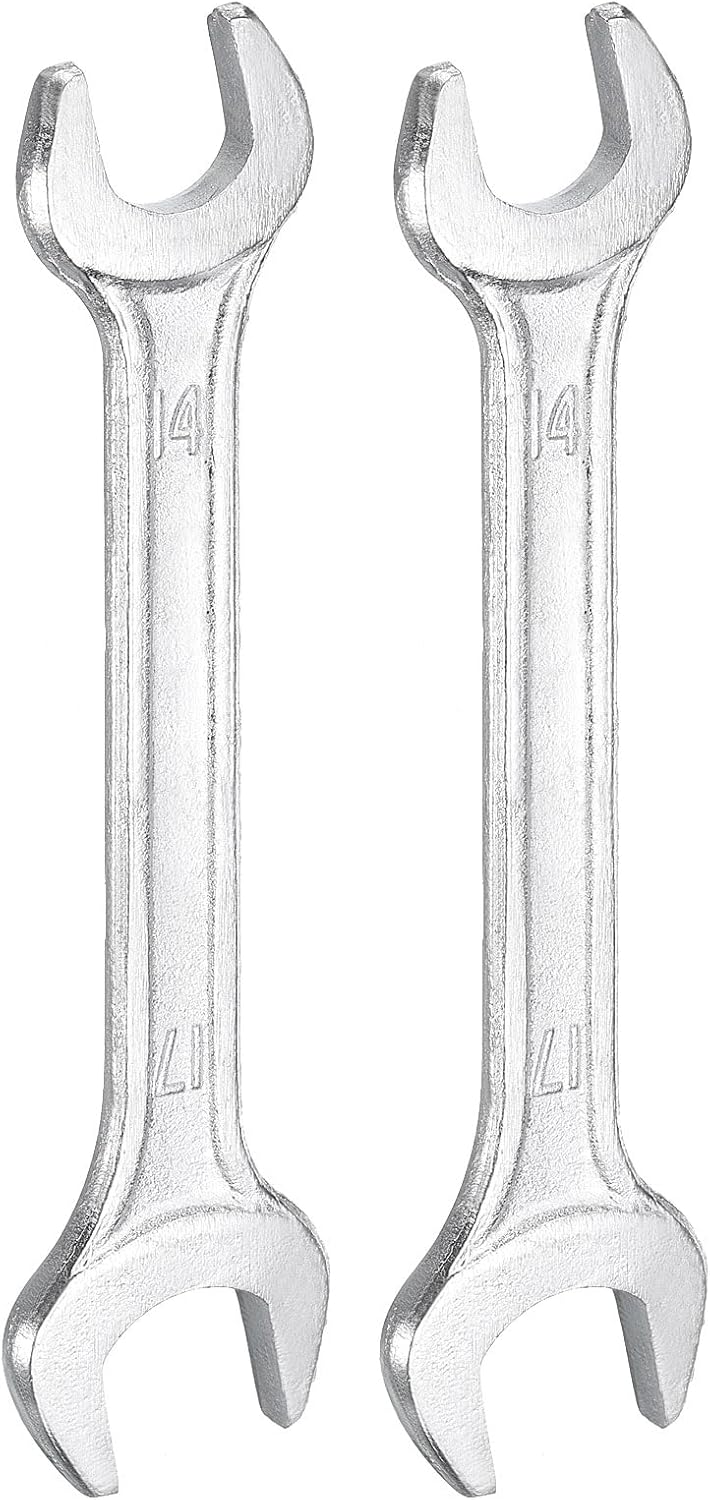 HARFINGTON 2pcs Double Open End Wrench 14mm x 17mm Metric 15 Degree Offset Angle Small Flat Head Wrench Galvanizing Open Ended Spanner for Automotive Repair Furniture Assembly