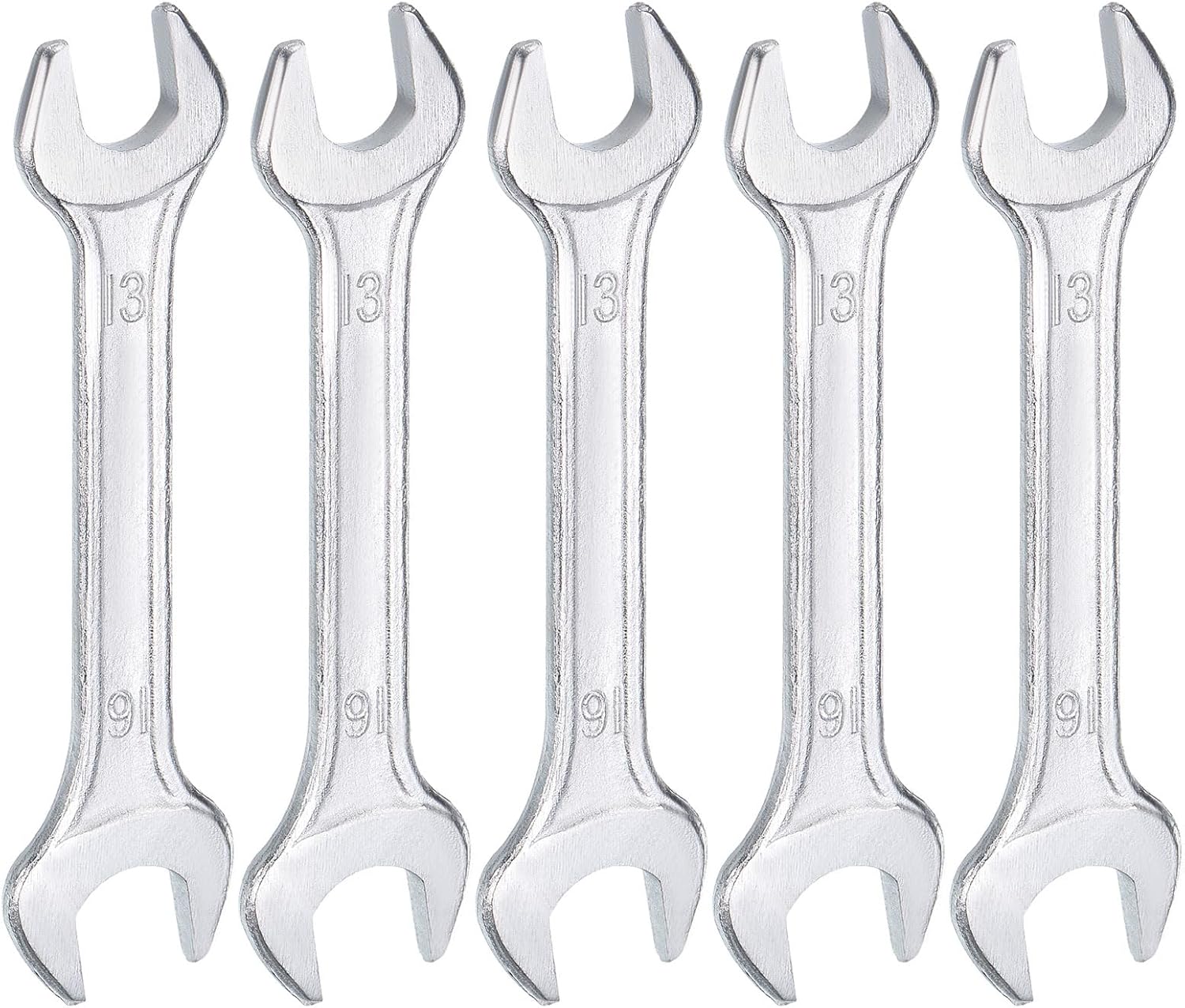 HARFINGTON 5pcs Double Open End Wrench 13mm x 16mm Metric 15 Degree Offset Angle Small Flat Head Wrench Galvanizing Open Ended Spanner for Automotive Repair Furniture Assembly