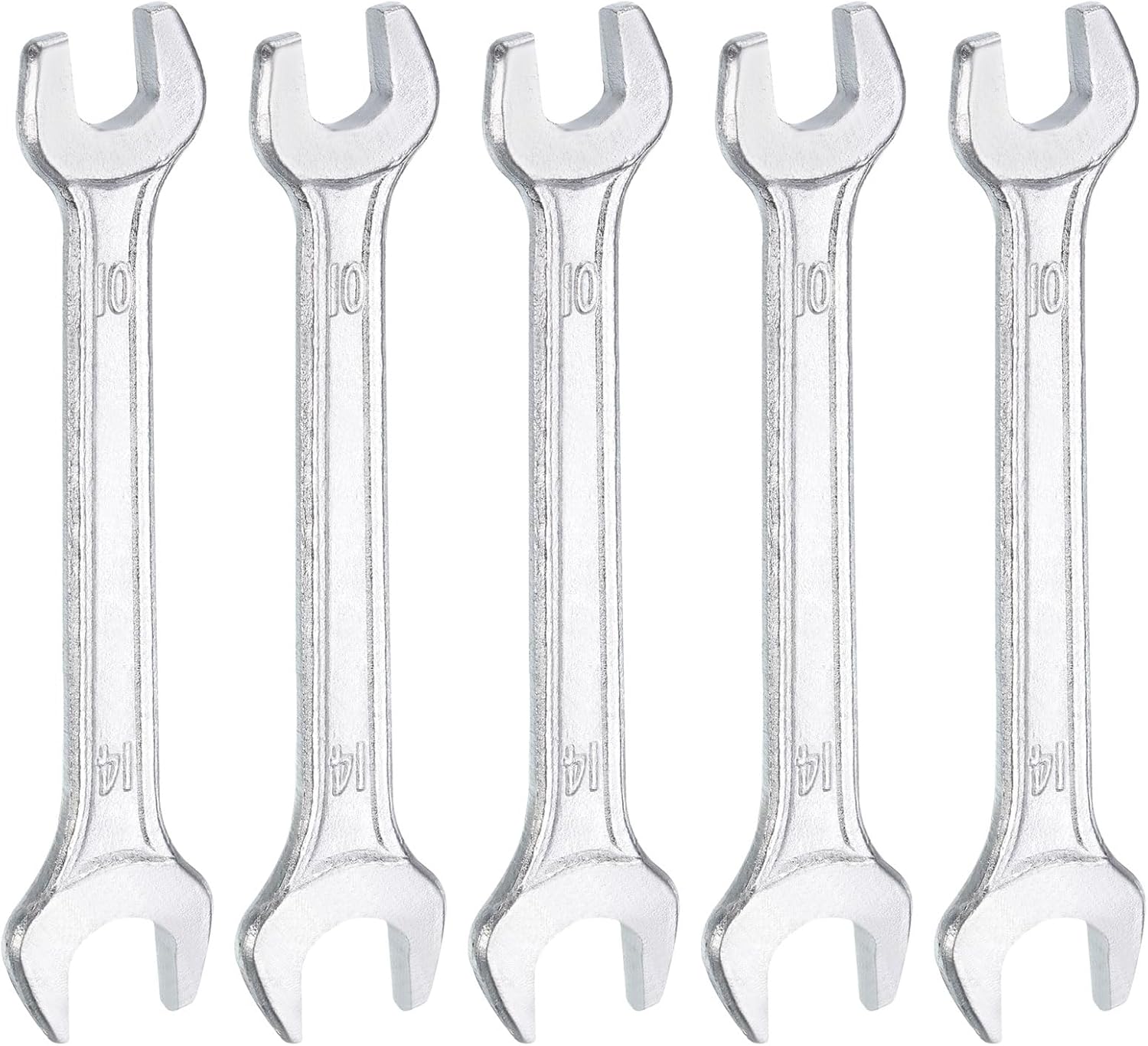 HARFINGTON 5pcs Double Open End Wrench 10mm x 14mm Metric 15 Degree Offset Angle Small Flat Head Wrench Galvanizing Open Ended Spanner for Automotive Repair Furniture Assembly