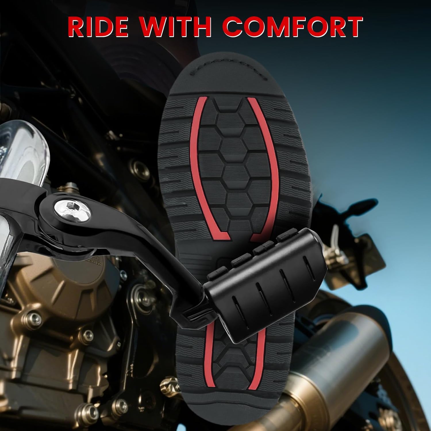 - Relax Your Foot: Adjustable highway pegs can adjust the leg position, reduce fatigue during long-distance riding, relax and feel comfortable! Folds inward when not in use to avoid scratching the car body or affecting low-speed maneuvers, taking into account both safety and convenience