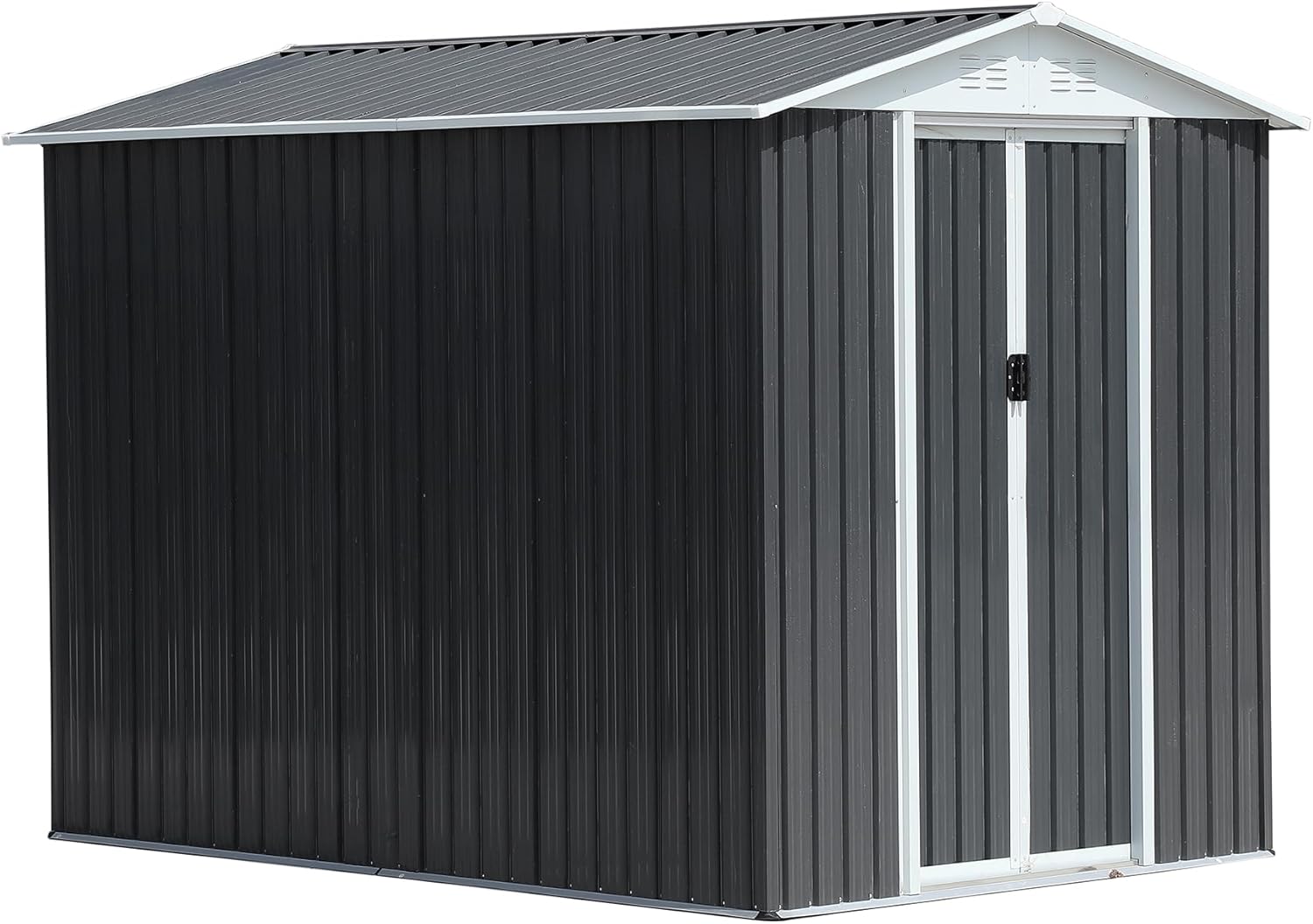6x9 FT Outdoor Storage Shed, Metal Garden Shed with Lockable Sliding Doors, Outside Tool Shed with Sloped Roof & 4 Air Vents, Waterproof Storage Building for Backyard, Patio, Lawn, Gray