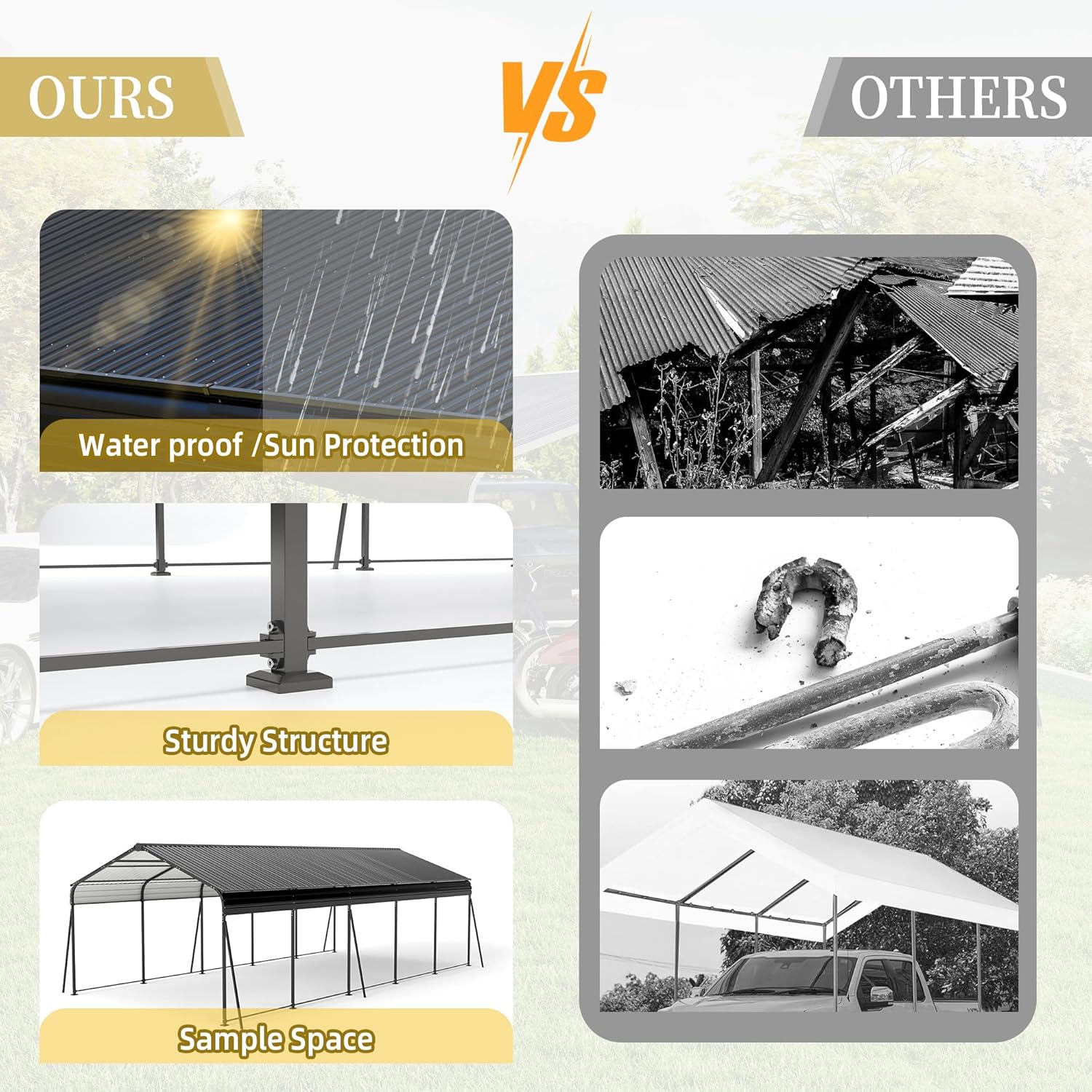 - ✅𝟏𝟎𝟎% 𝐂𝐮𝐬𝐭𝐨𝐦𝐞𝐫 𝐒𝐚𝐭𝐢𝐬𝐟𝐚𝐜𝐭𝐢𝐨𝐧: Enjoy peace of mind with a 12-month warranty and a 30-day return or replacement policy. We're committed to protecting your rights and interests, so feel free to reach out if you have any waterproof metal carport questions. We will resolve your concerns within 24 hours