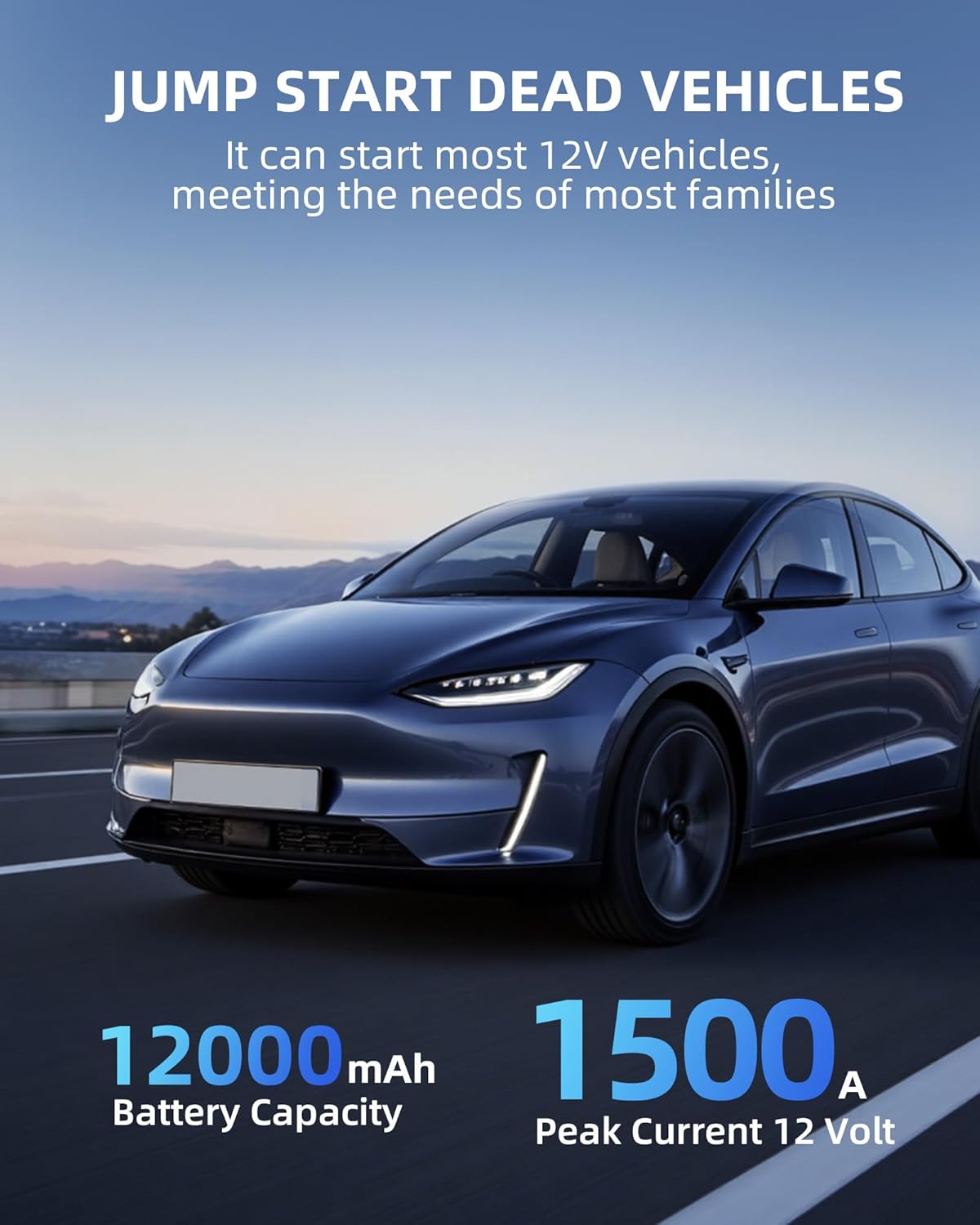- Foolproof Safety System: Features smart jumper cables with 10+ protections: spark-proof, reverse polarity, overheat, overcharge, short circuit, and more. Safe to use, even for first-time users.