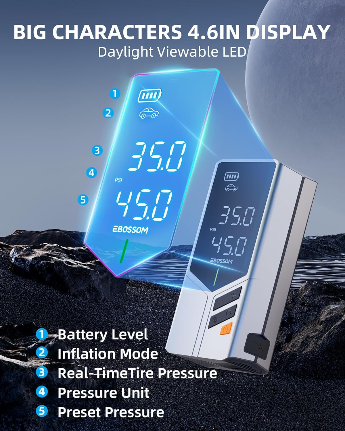 - 2-in-1 Power & Convenience: Combine a 44.4Wh high-capacity car jump starter and tire inflator in one compact device. Save space while staying prepared for both flat tires and dead batteries — no need for two separate tools!