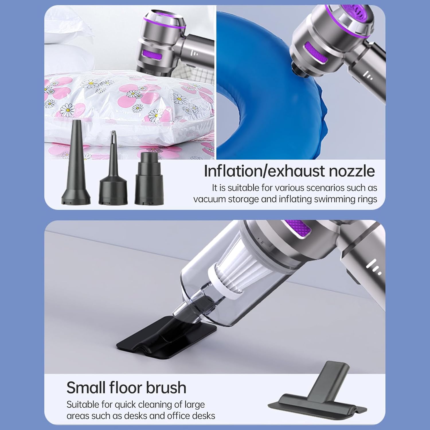 - 【Versatile 4-in-1 Design】More than just a vacuum cleaner, this car vacuum is equipped with a variety of accessories that can blow, vacuum and pump for a variety of scenarios, which is very helpful to reach small areas that a larger vacuum can't, it's perfect for removing dust, cleaning keyboards, inflating outdoor gear and deflating storage bags, anytime, anywhere.
