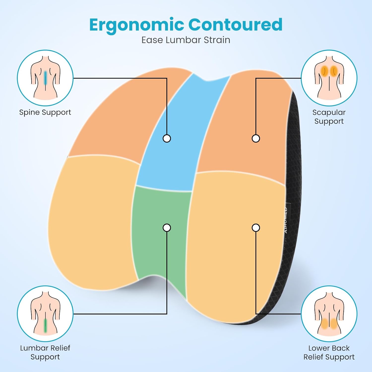 - TARGETED BACK RELIEF SUPPORT- Relieves pressure & discomfort in your lower, mid, and upper back during long sitting sessions, and helps achieve correct sitting posture and maintains a healthy spine curve to reduce strain.