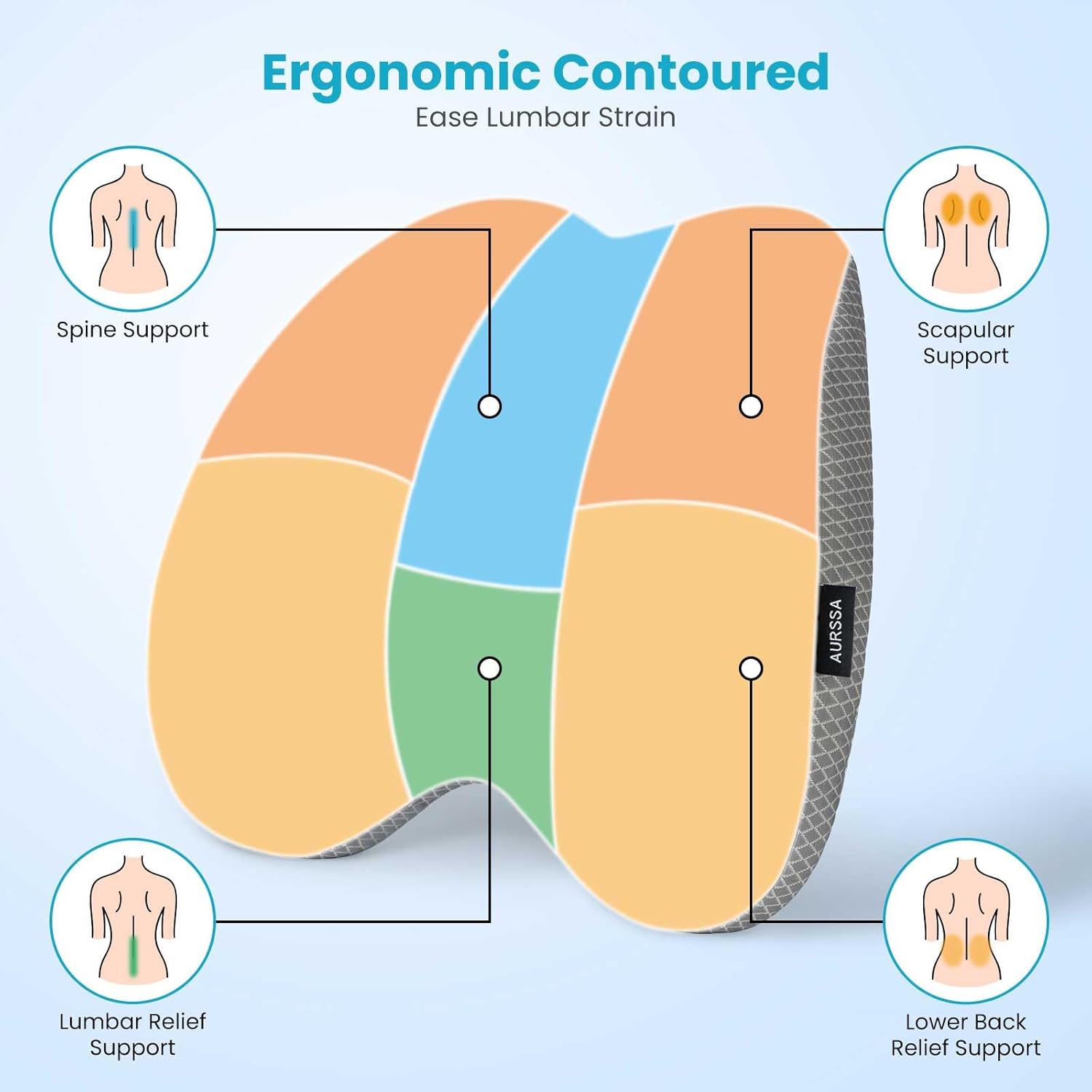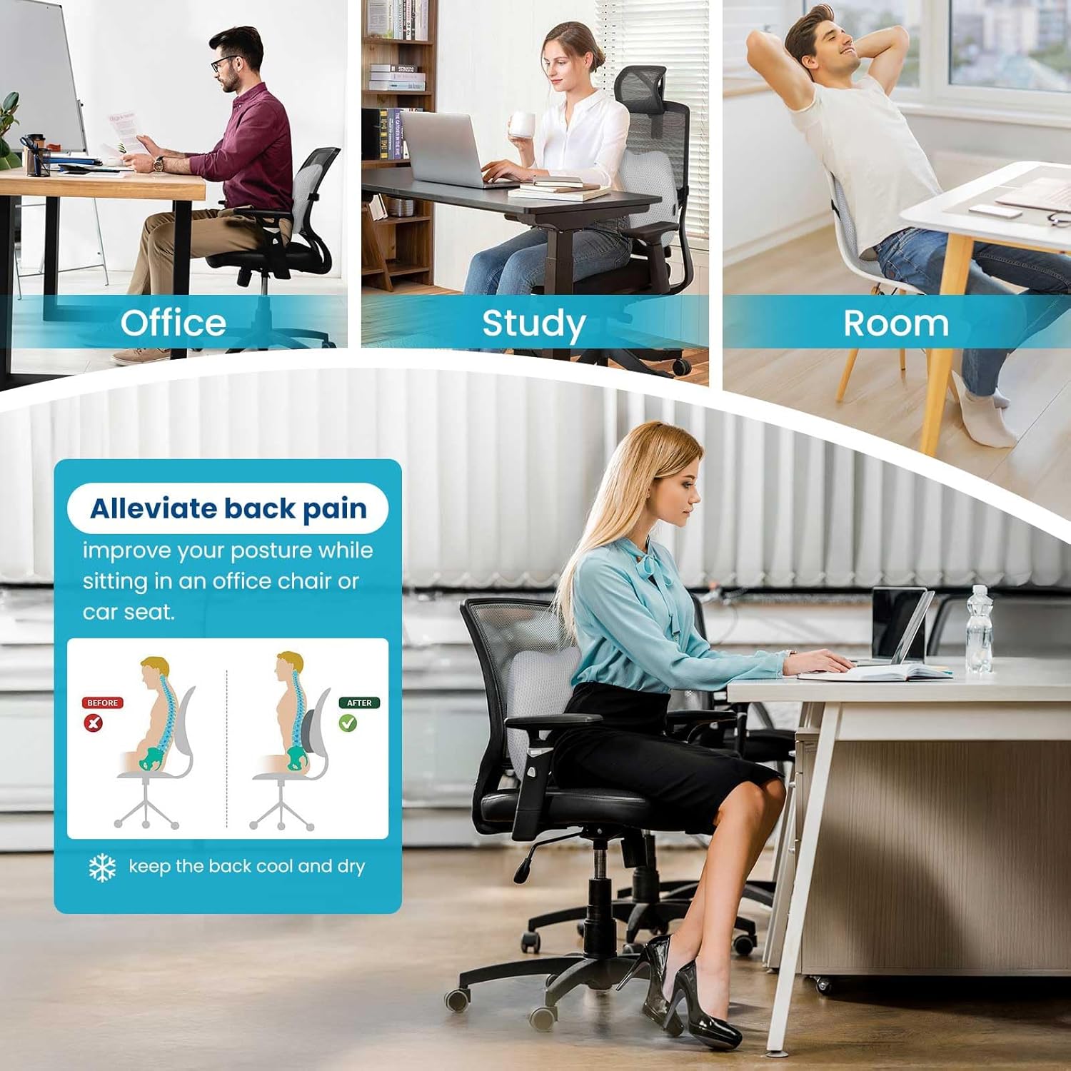 - TARGETED BACK RELIEF SUPPORT- Relieves pressure & discomfort in your lower, mid, and upper back during long sitting sessions, and helps achieve correct sitting posture and maintains a healthy spine curve to reduce strain.