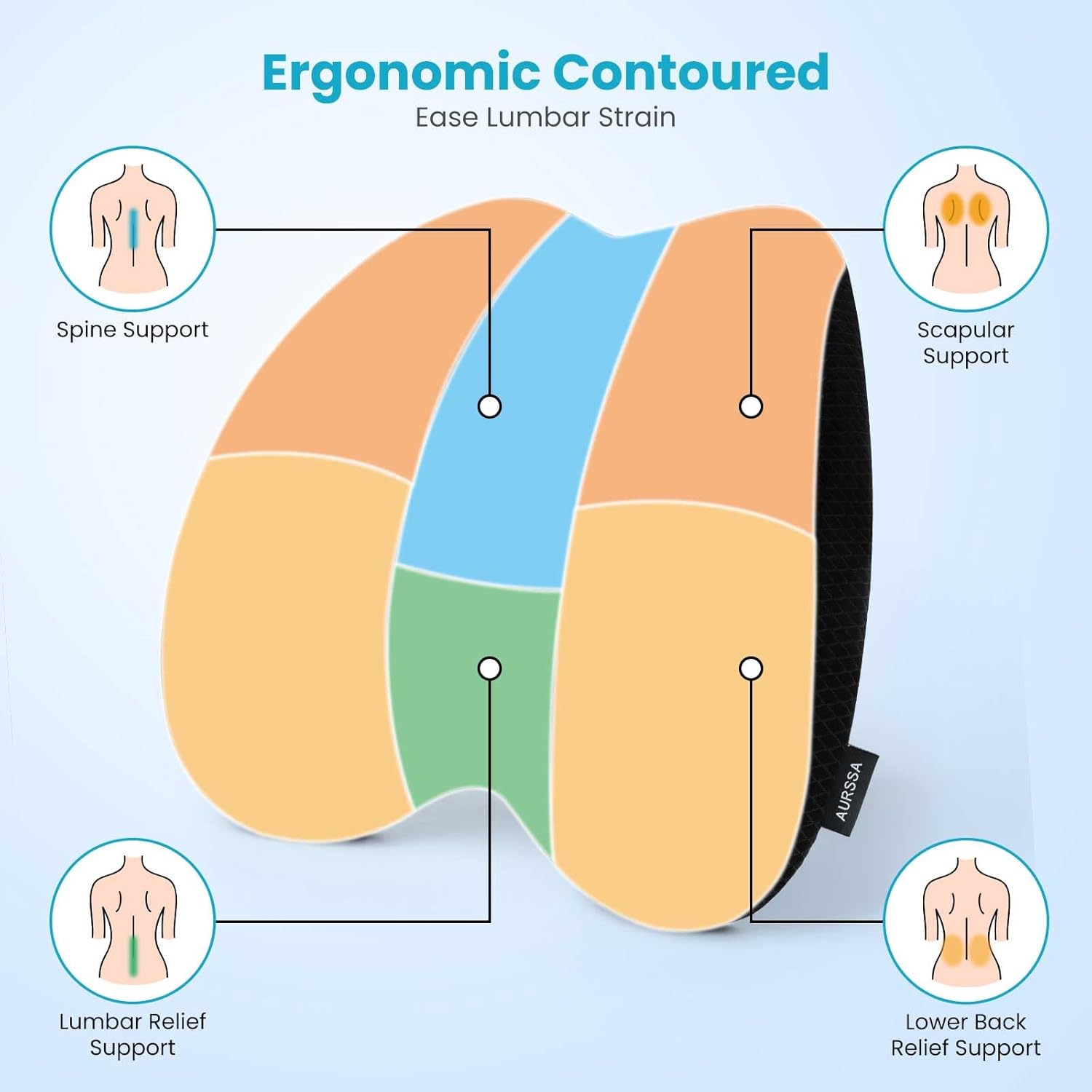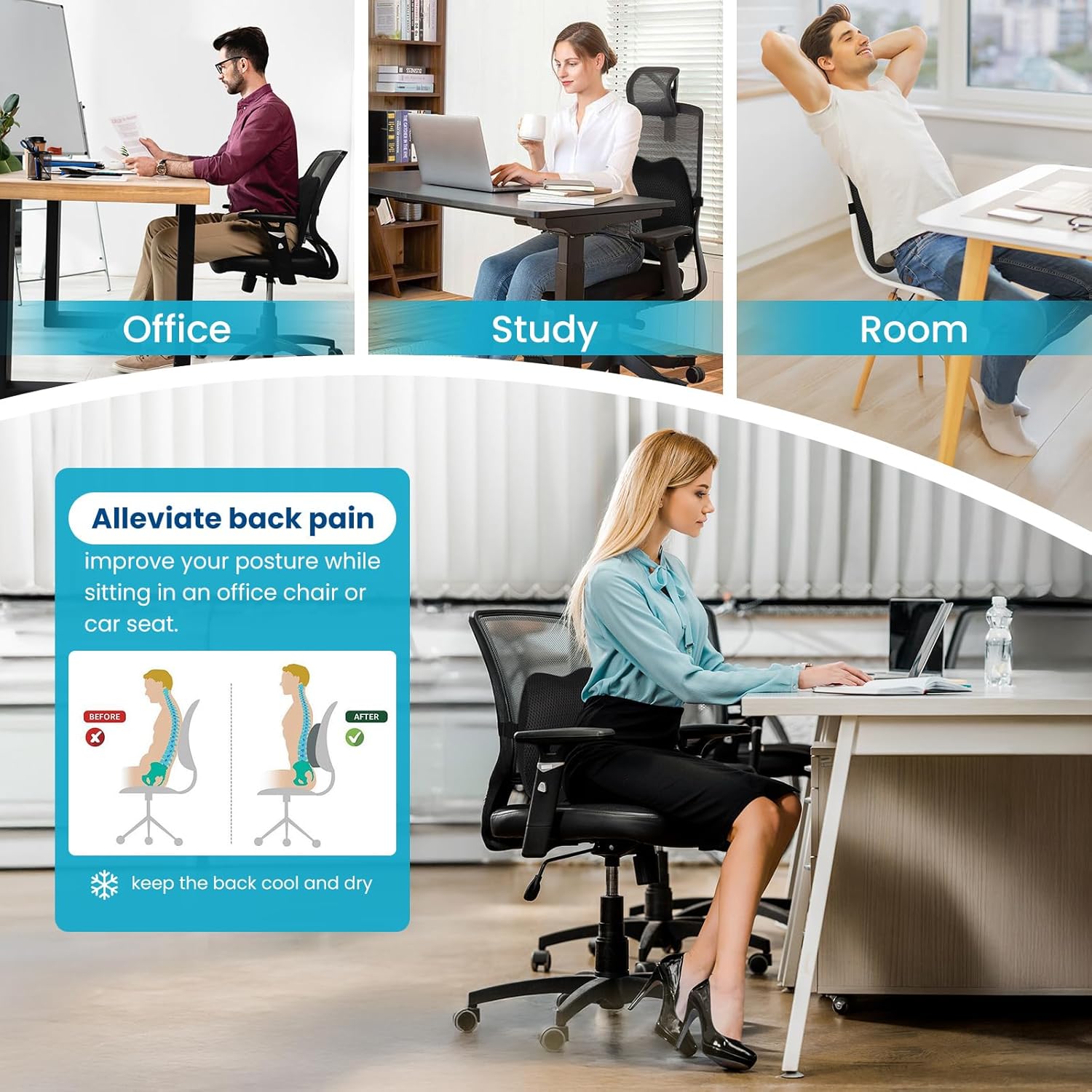 - TARGETED BACK RELIEF SUPPORT- Relieves pressure & discomfort in your lower, mid, and upper back during long sitting sessions, and helps achieve correct sitting posture and maintains a healthy spine curve to reduce strain.