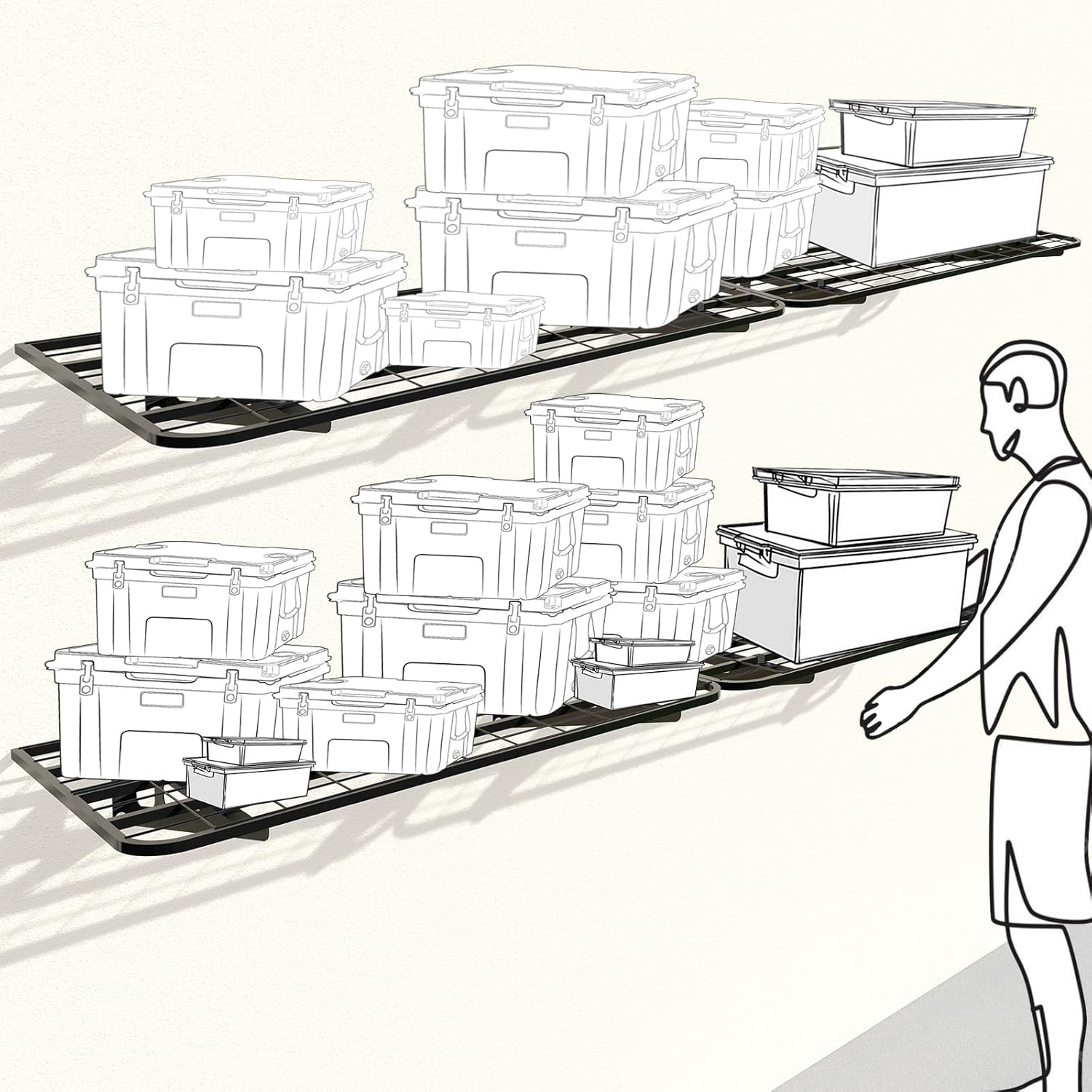 4-Pack 2x4ft Garage Wall Shelving, 4 Shelf Total 16 ft(L) Garage Shelving Wall Mounted, Heavy-Duty Storage Shelves, Perfect for Holding Storage Bins, Sporting Goods, Tools, and More Space-Saving