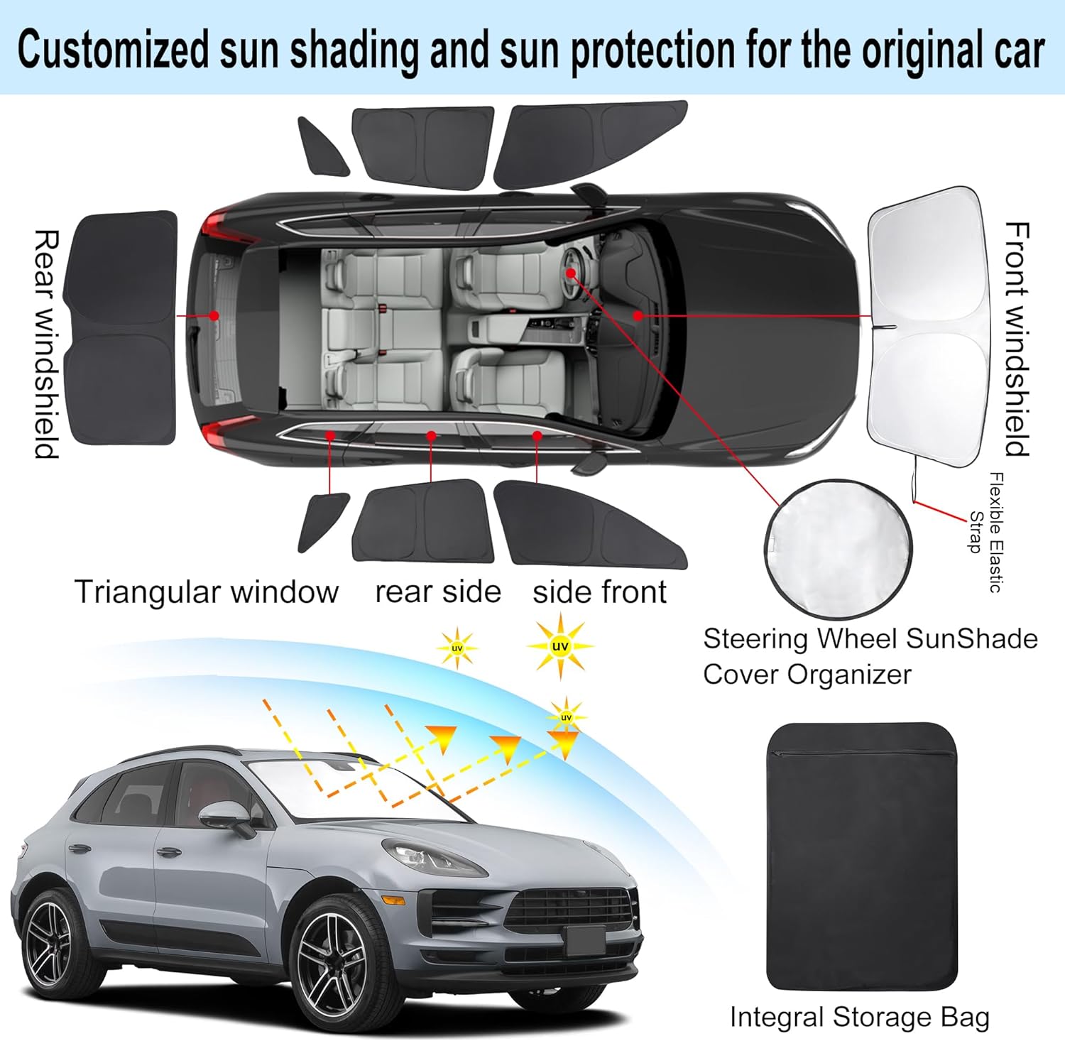 - Customized Design:The sun shade custom fit for Porsche Macan 2014-2024.Our window shade is according to the car size design,perfectly fit your car and does not need to trim.windshield sun shade solve the problem of light leakage and incompatibility of the old umbrellas.The sunshade designed for Porsche Macan.