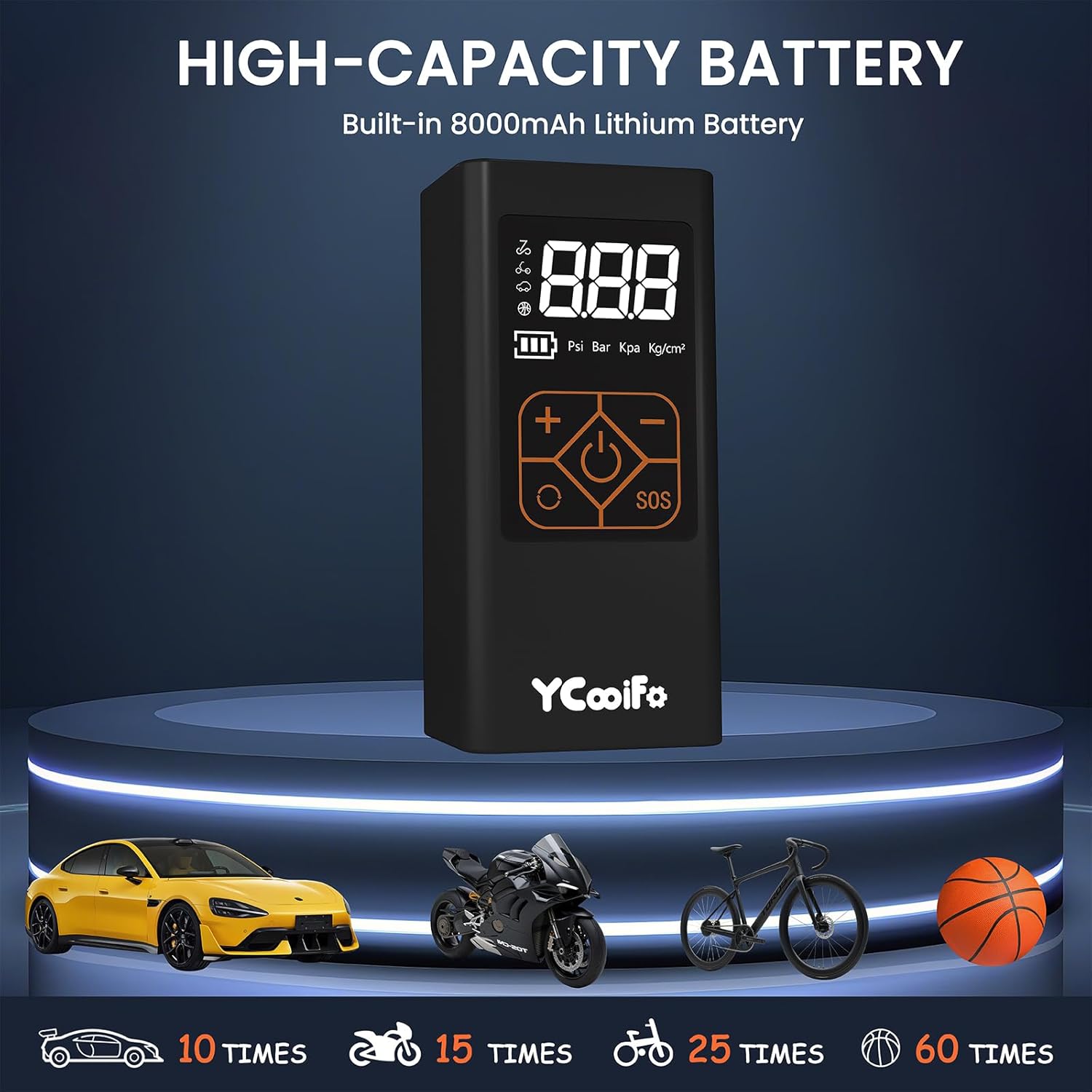 150 PSI Tire Inflator Portable Air Compressor, 8000mAh Battery Auto Shut-Off Air Pump, 6X Inflator Portable Tire Inflator for Car, Bicycle, Motor, Ball