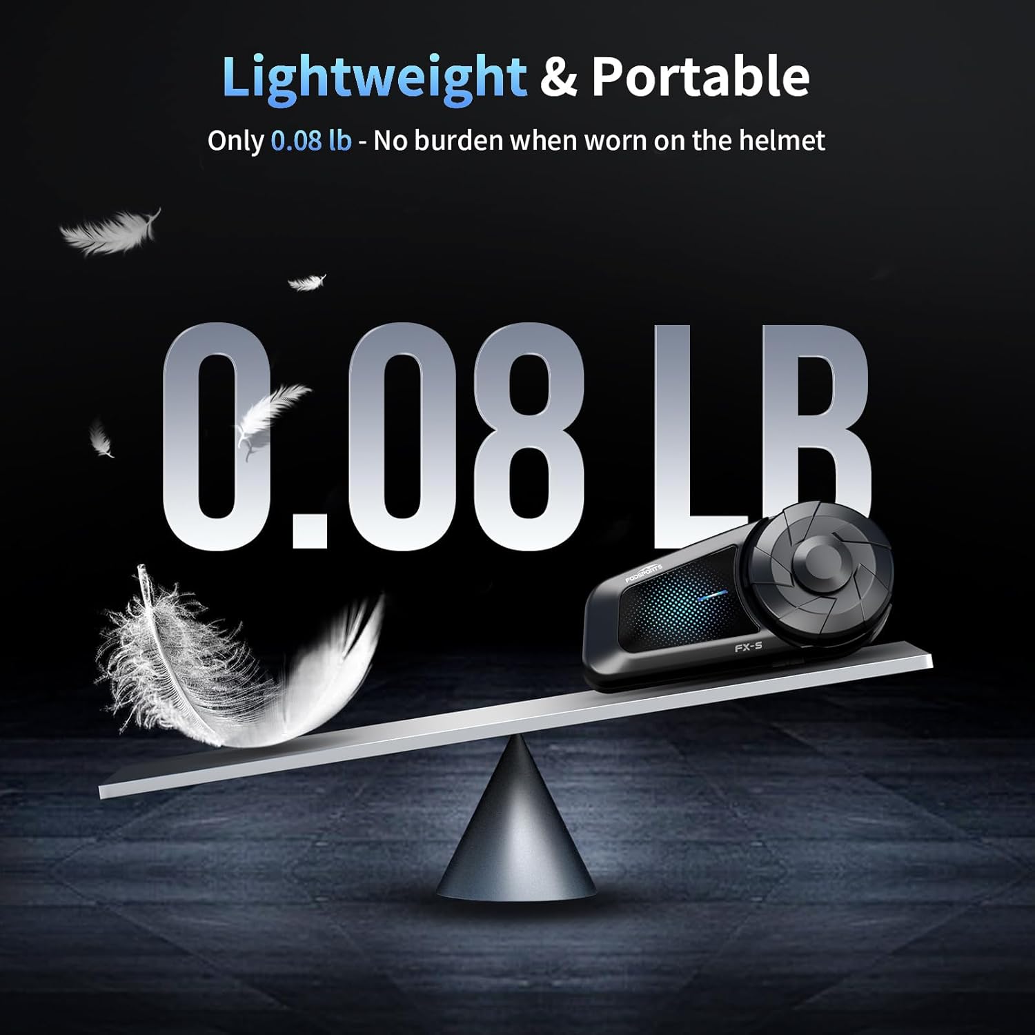 - Superior Sound Quality, HD Speakers: FX-S Bluetooth motorcycle headset is paired with Hi-Fi motorcycle speaker(Width: 40mm, Height: 0.9mm) that delivers every audio detail clearly and vividly, providing the most superior sound quality in any environment. It also fits perfectly into your helmet without putting any strain on your ears