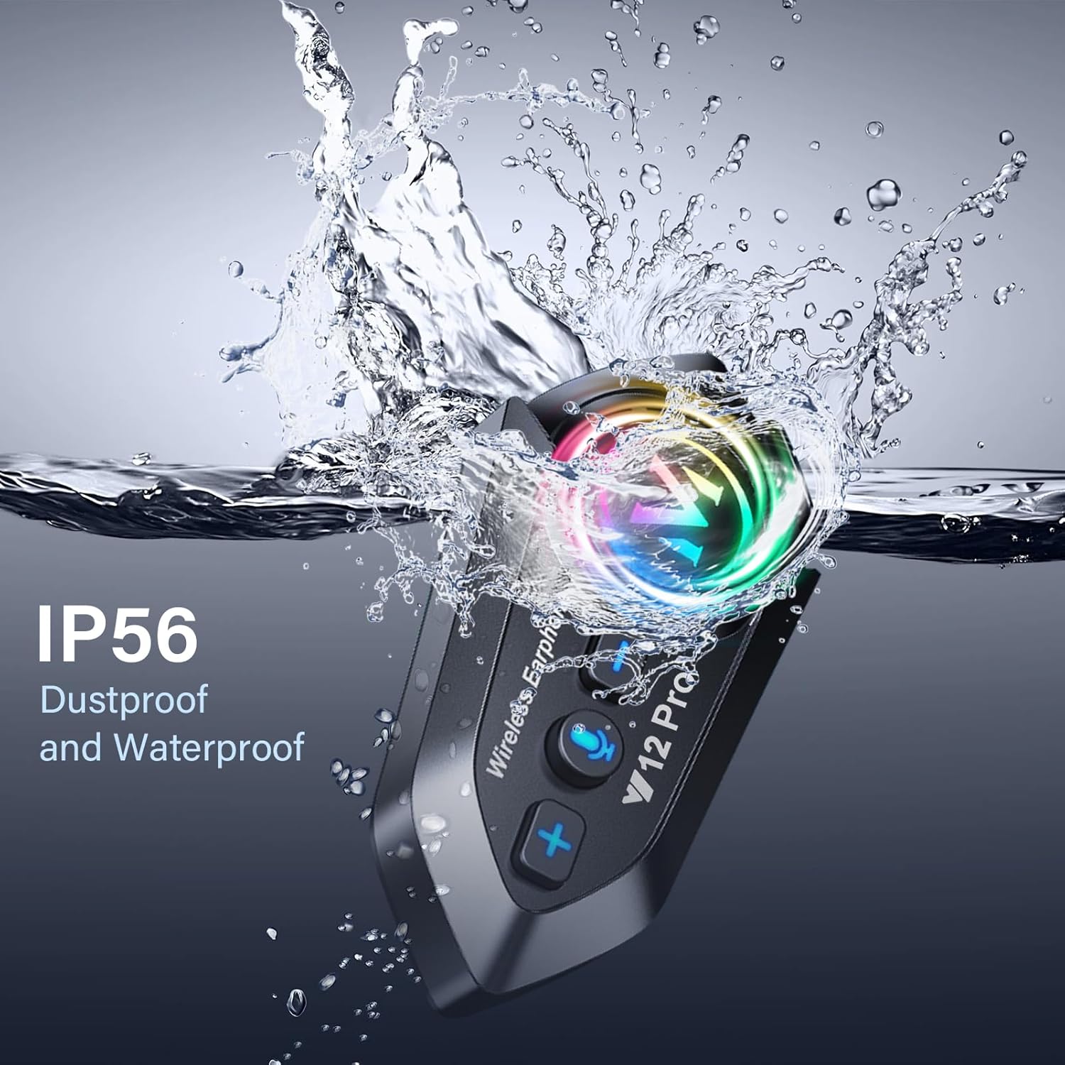 - 【IP56 Waterproof and Easy to Use】:The helmet speakers use IP56 waterproof technology that can handle all weather conditions.No fear of wind and rain.Just turn on the headset,long press the function key to enter the matching mode (at this time, the red and blue light of the machine flashes), and select the motorcycle headset model matching your mobile phone to use.