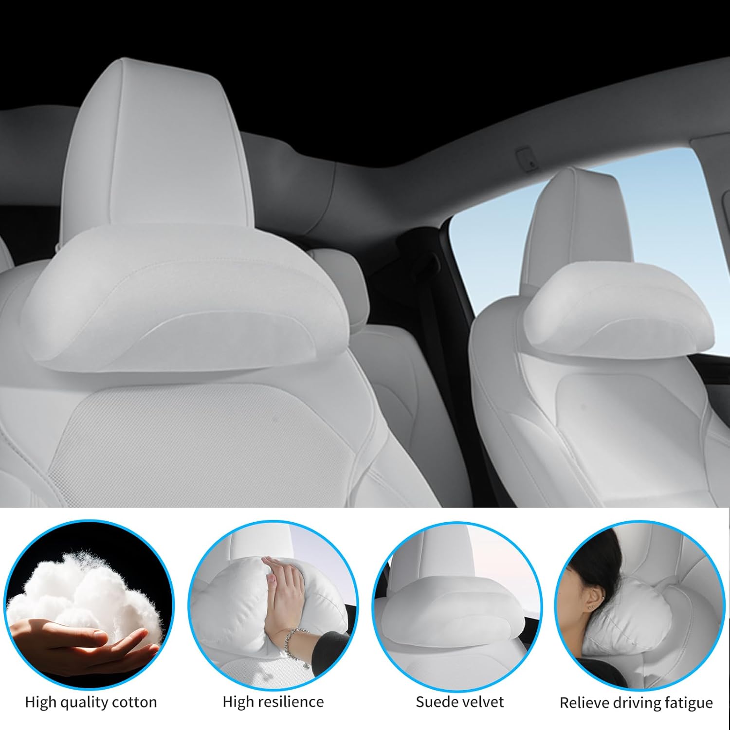 Car Headrest Pillow for Driving, Softness Ergonomic Design Universal Travel Neck Pillow for Most Cars, Office Chairs, Gaming Chairs with Extra Filler Cotton Bag (White, 1PC)
