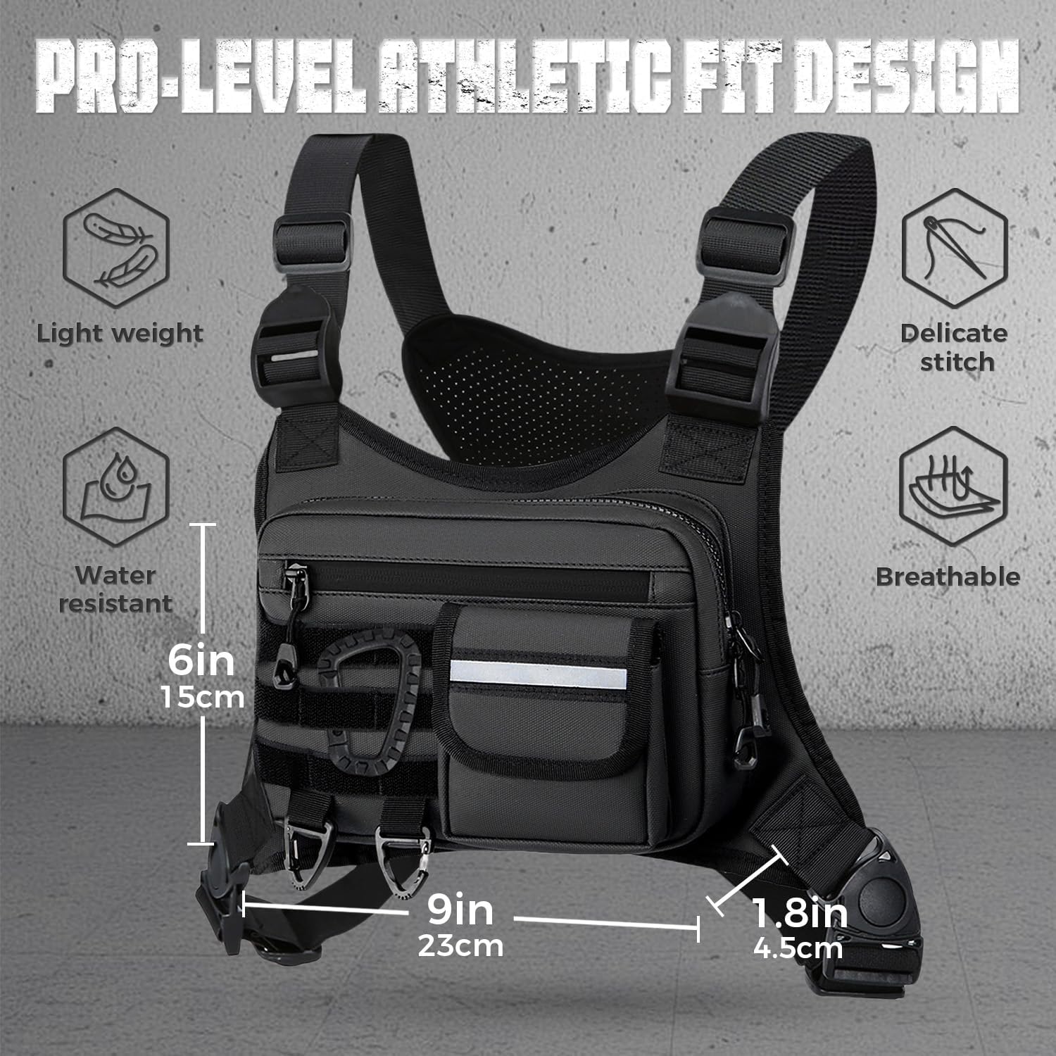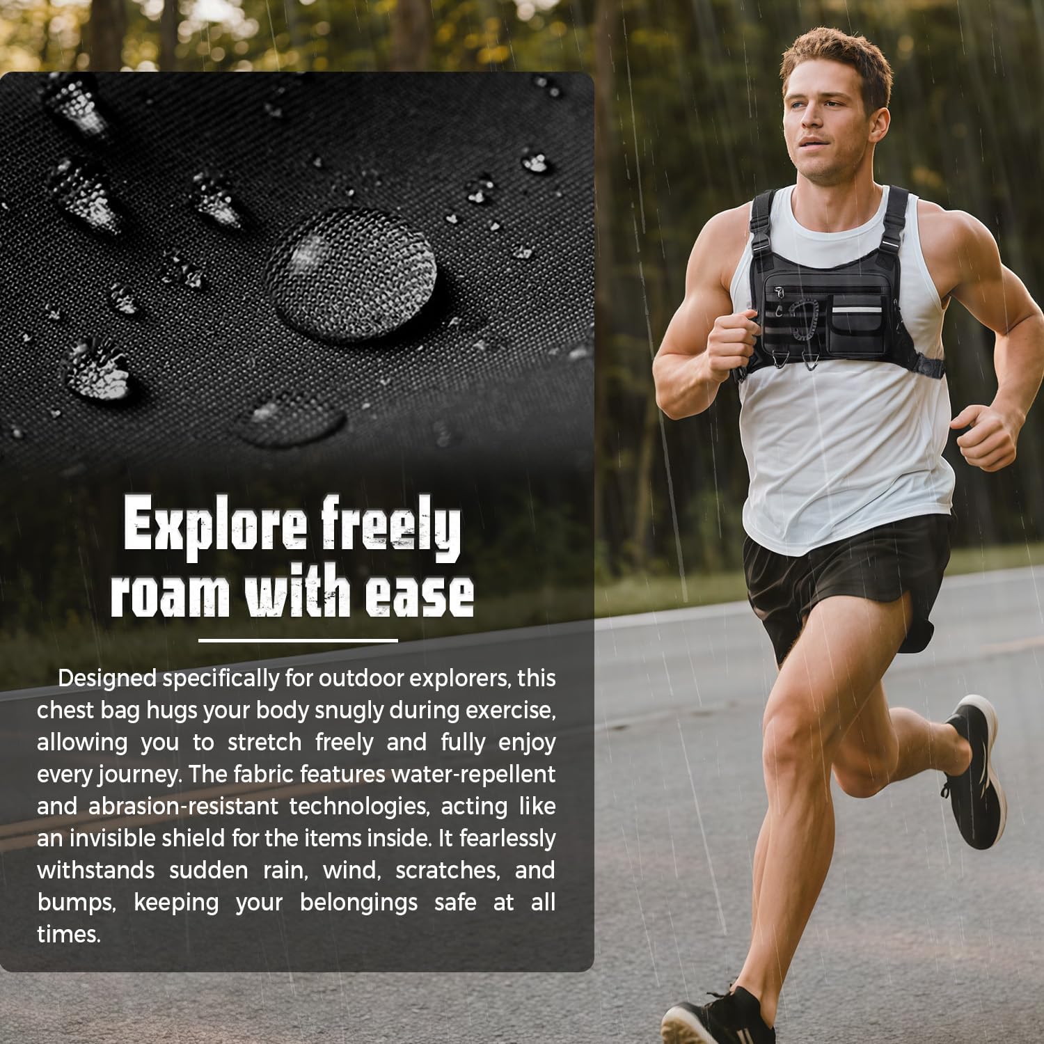 • 1) Outdoor Chest Bag For Men, Tactical EDC Chest Pack With Built-In Phone Holder, Lightweight Chest Rig Pouch For Workouts, Running, Cycling, Hiking