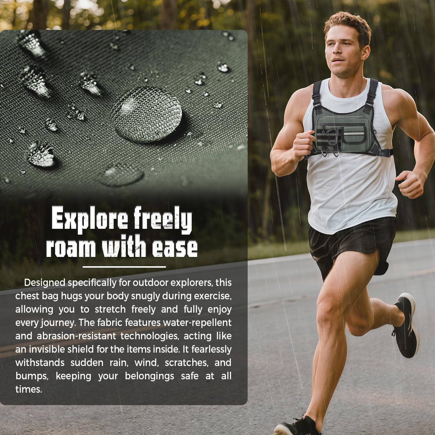 • 4) Our tactical chest backpack is made of durable nylon, very sturdy, suitable for running, hiking, fishing, hunting, wild adventure