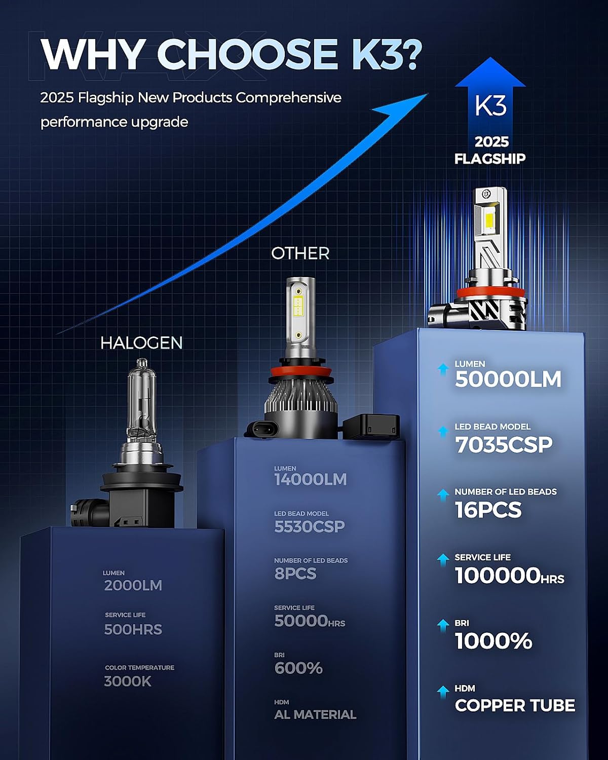 2025 10X Brightener H11 Led Bulb for Car Owners, 50000Lm H9 for Drivers at Night, H11 Bulb During Bad Weather, H8 H9 1:1 Real Size, 100000 Hours Lifespan, 99% Fit Your Vehicles, Plug & Play, 2 Pack