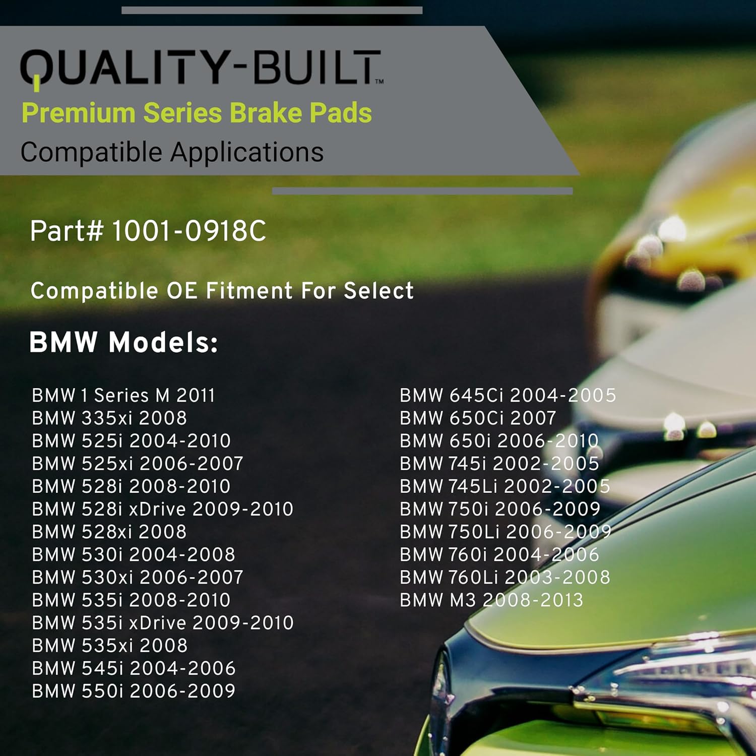 Premium Ceramic Front Brake Pads (1001-0918C) Compatible with 2002-2013 BMW (1 Series M/335xi/525i/525xi/528i/528i xDrive/528xi/530i/530xi/535i/535i xDrive/535xi/545i/550i/M3 & More)