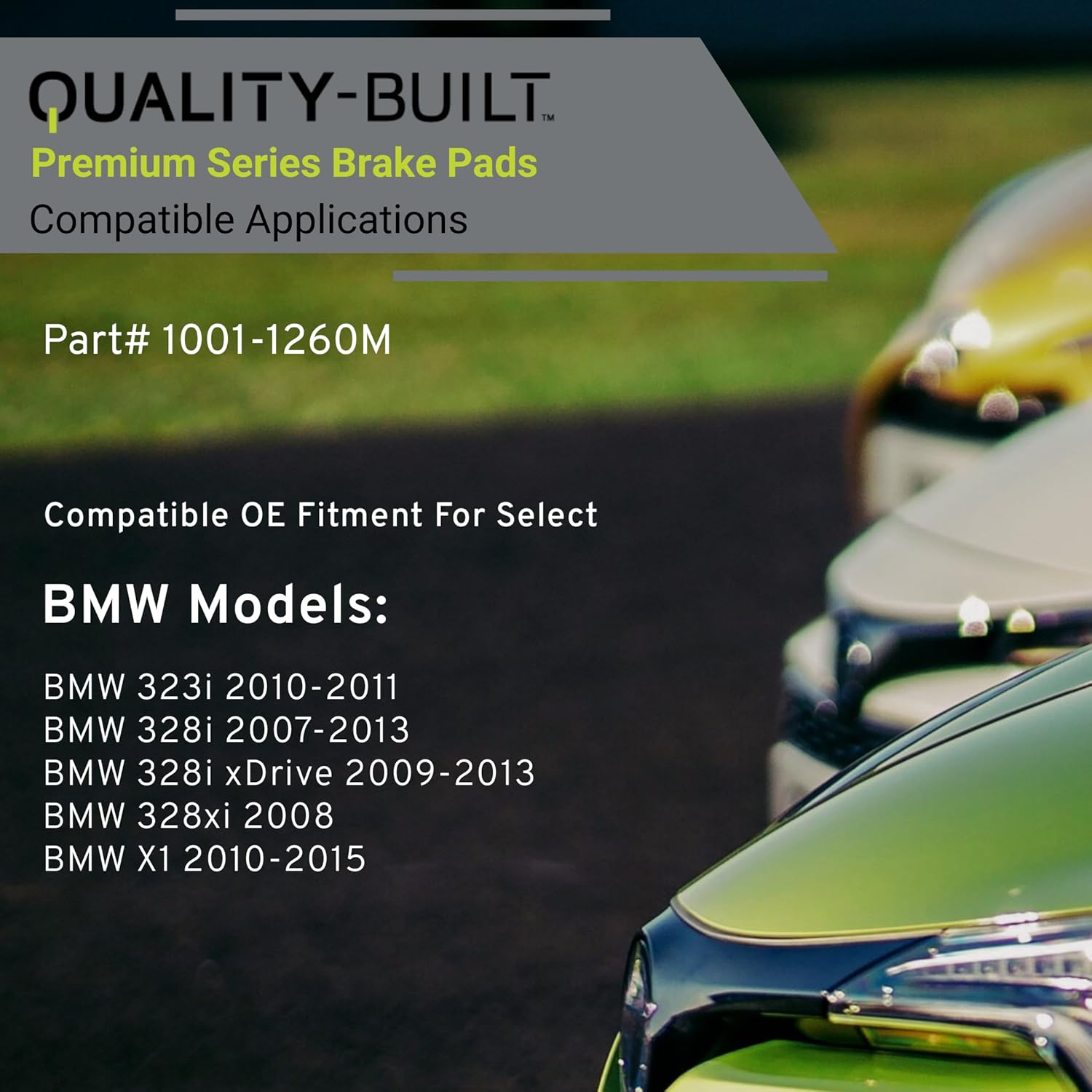 - VEHICLE FITMENT LIST: BMW 323i 2011-2010, 328i 2013-2007, 328i xDrive 2013-2009, 328xi 2008, X1 2010, X1 2015-2012 (PART#1001-1260M)