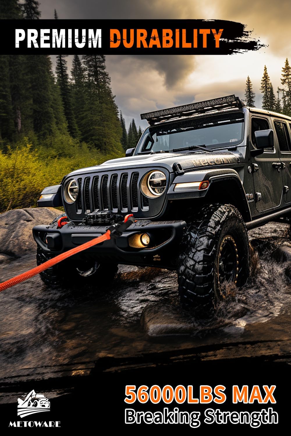 - DURABLE AND RELIABLE: Engineered for extreme durability, the elastic recovery rope absorbs kinetic energy to reduce shock loads, while its ultra-high 56,000lbs breaking strength ensures reliable performance for UTVs, trucks, tractors, and other heavy-duty vehicles