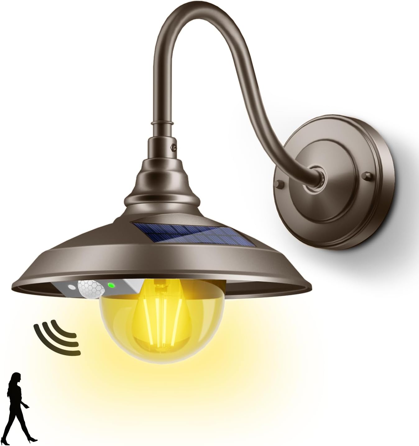 SIEDiNLAR Solar Barn Light Outdoor 3 Modes 2 Lighting, Aluminum Gooseneck Wall Light Vintage Farmhouse Waterproof with Remote & Motion Sensor for Barn Garage Shed Chicken Coop Dark Bronze (1 Pack)