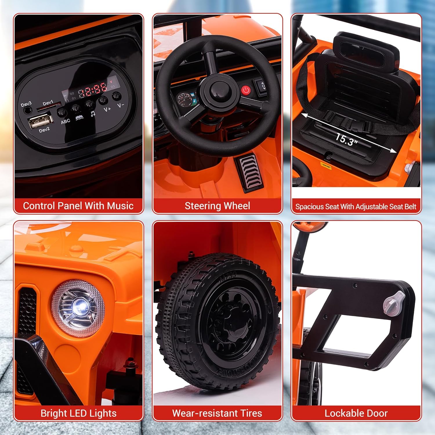 - 5. Certified Safety Engineering: CPSIA/CPC/ASTM-F963 compliant with reinforced ABS chassis. Passed roll-over stability tests (66lb/30kg load limit) and pinch-point safety checks. Overload protection and short-circuit prevention built into battery system.