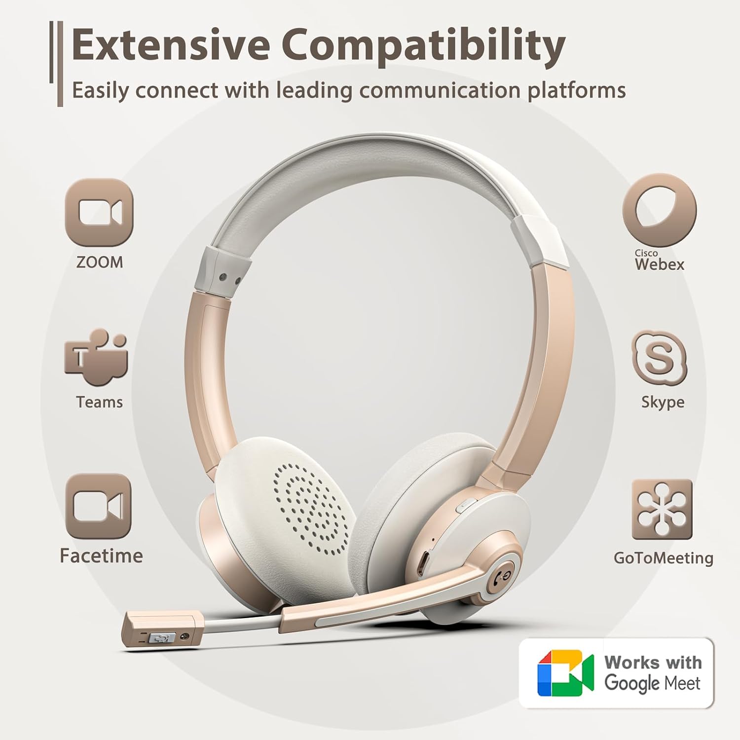 - 【AI Noise Cancellation & Mute Mode】Our wireless headset with mic utilizes advanced ENC technology to effectively cancel up to 99% of ambient noise. Your voice will be heard loud and clear in all your calls, no matter how noisy your surroundings It is the perfect choice for remote workers. With the mute button, you can mute your voice freely at any time on a call, protecting your privacy (Mute only works during a call or meeting)