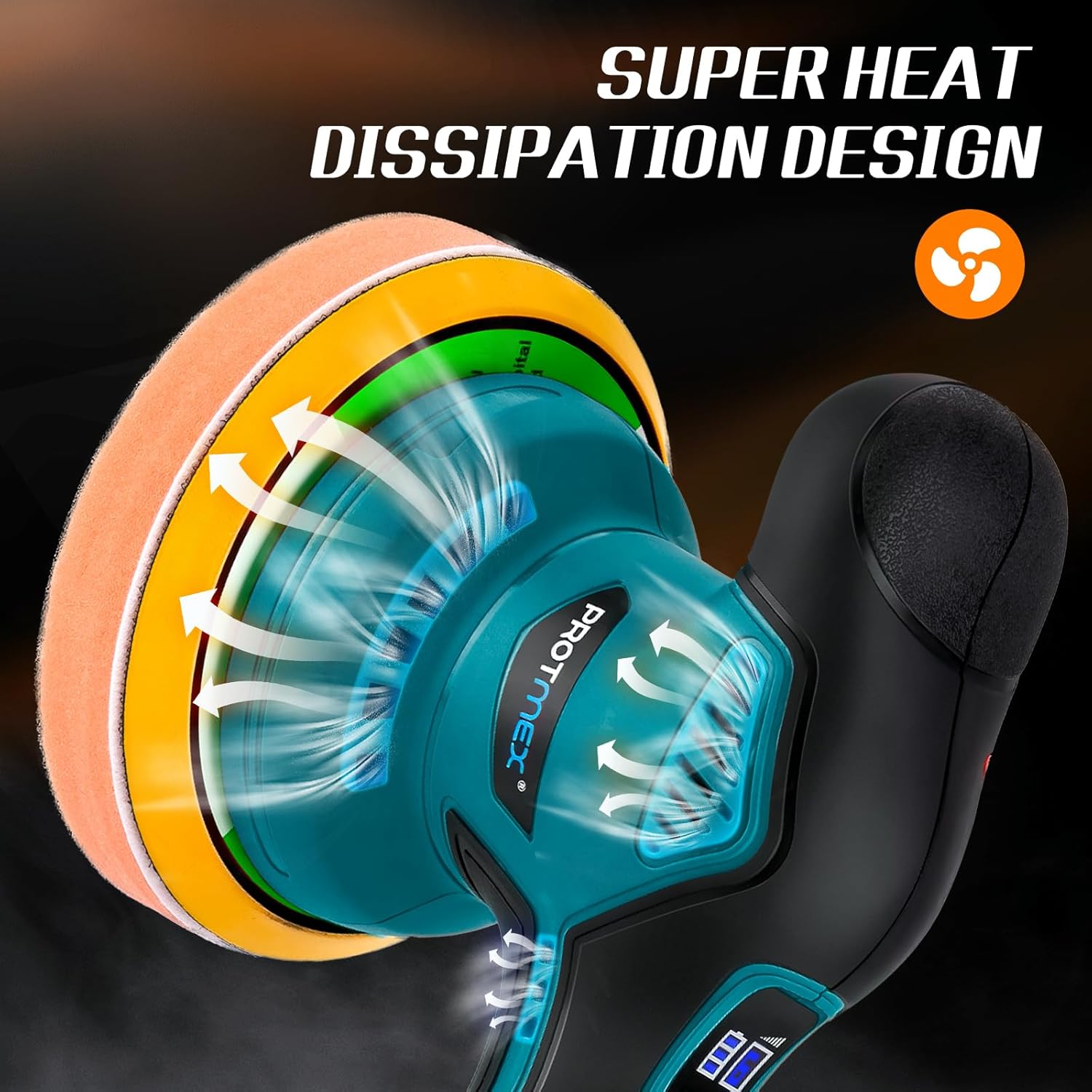 - 【2025 NEWLY UPGRADED ECCENTRIC POLISHER】The Protmex car polisher is equipped with a pure copper motor, and safe temperature control protection, stable and durable operation. The eccentric polisher can help wax spread evenly to prevent over-polishing and paint wear.
