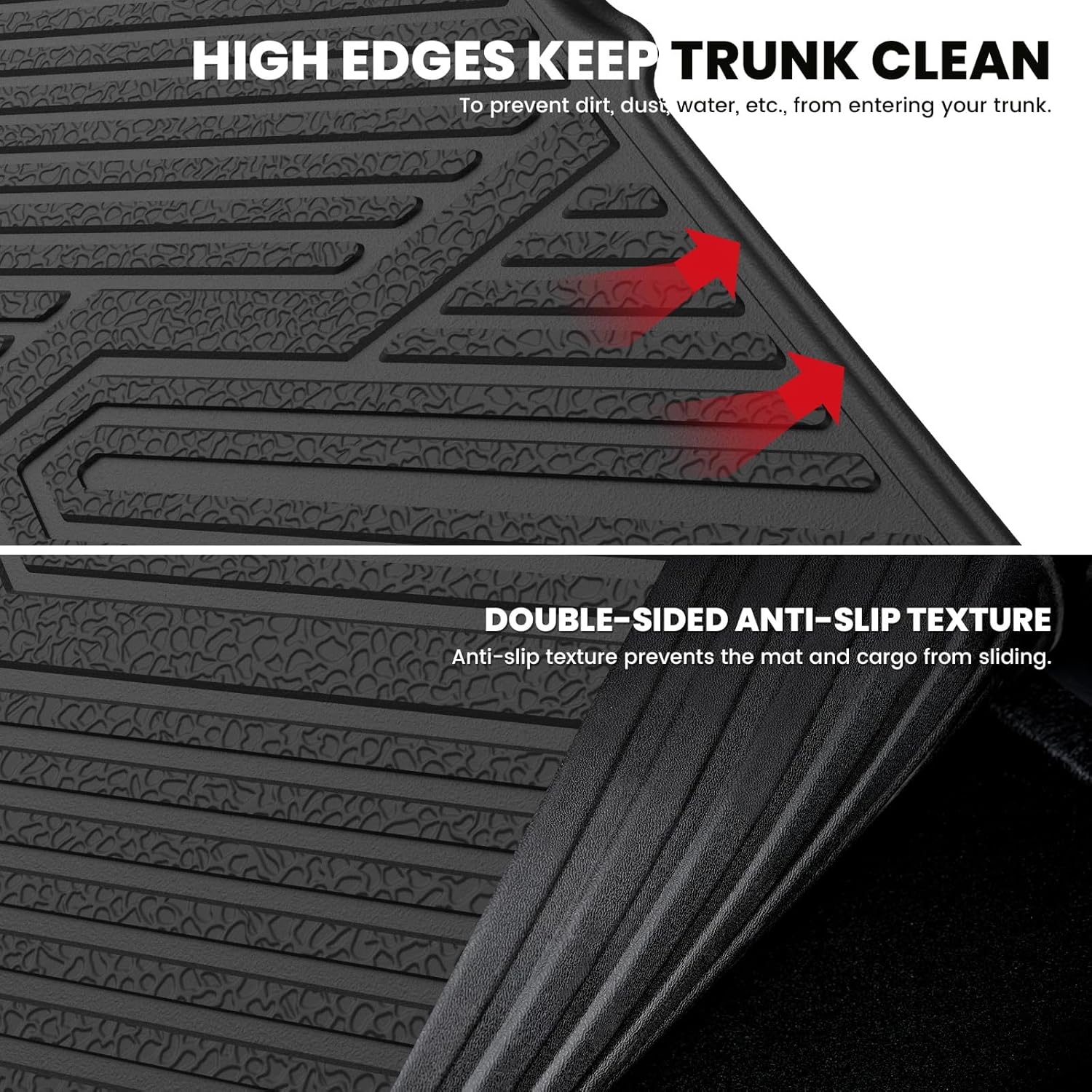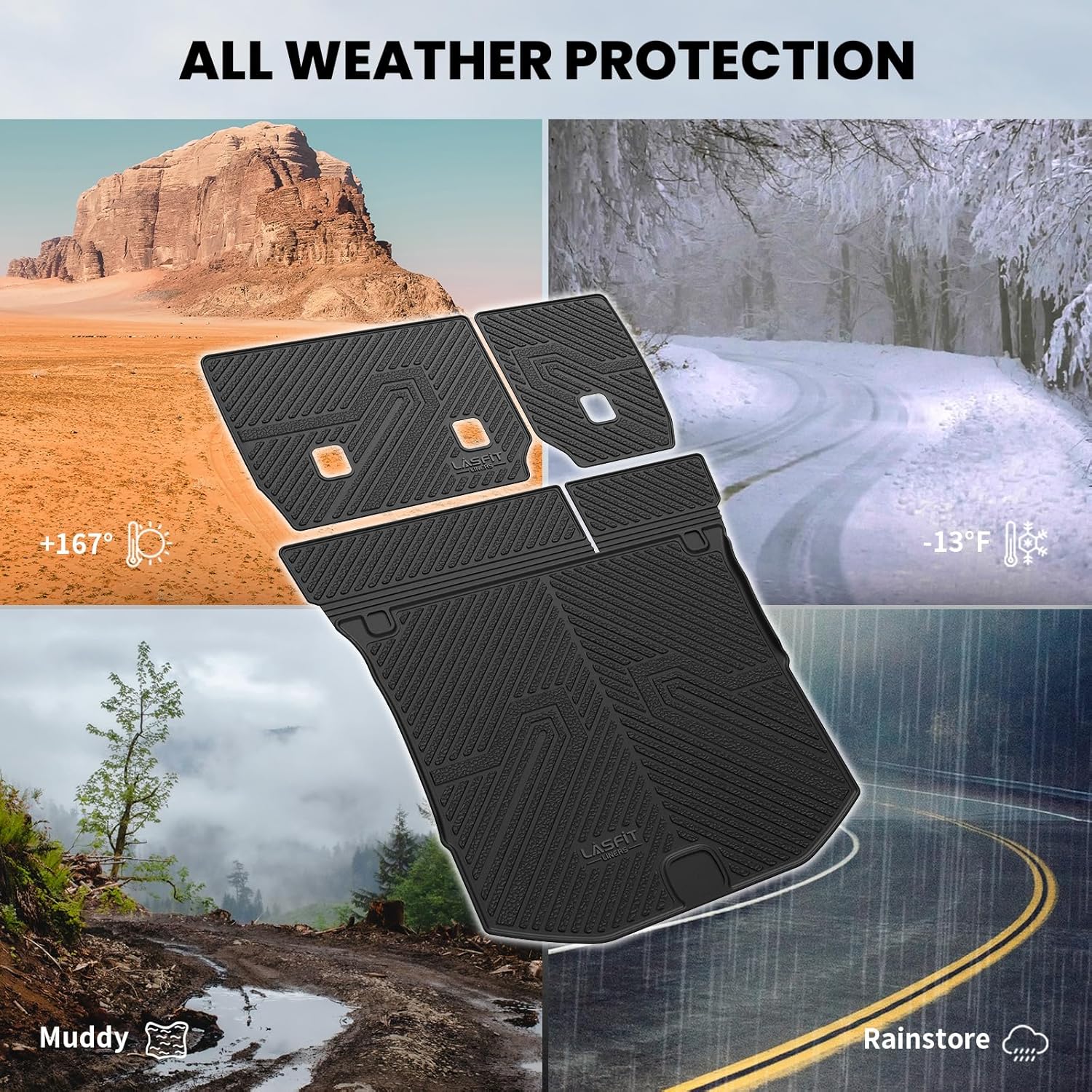 - FIRM YET FLEXIBLE - Raised edges all the way around have been upgraded to the use of innovative material, allowing our floor liners last long, way more durable that they won't curl or end up buckling.