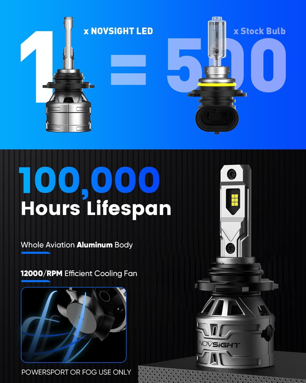 - 【Brighter Output, Clearer Night Drive】NOVSIGHT 9005 h11 bulbs offer up to 4× brightness over stock, helping you see farther and clearer on dark roads. Better visibility means safer driving and reduced accident risk at night.