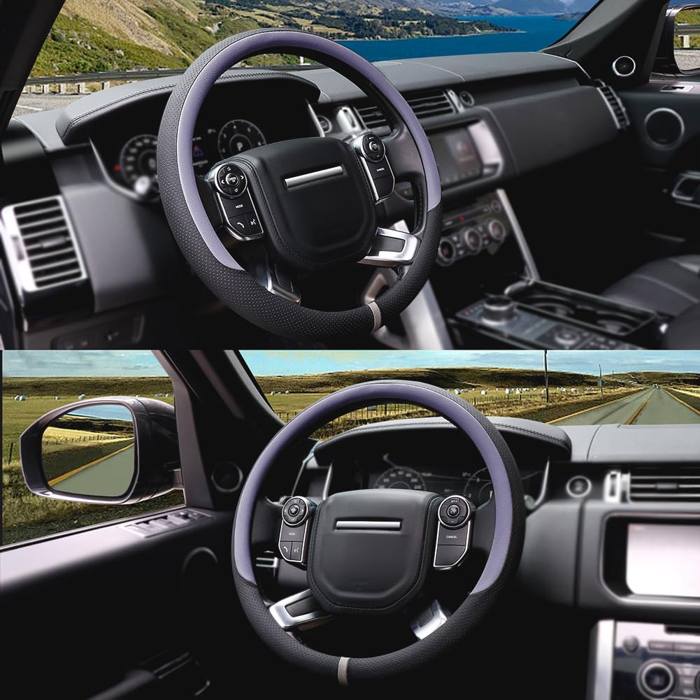 - Breathable Design with Non-Slip Grip: Made of premium perforated leather, this slim steering wheel cover enhances airflow (breathable material) while providing a non-slip surface for secure driving. Resists sweat and extreme temperatures, ensuring safety in rainy or hot climates. A must-have car accessory for road trips and daily commutes