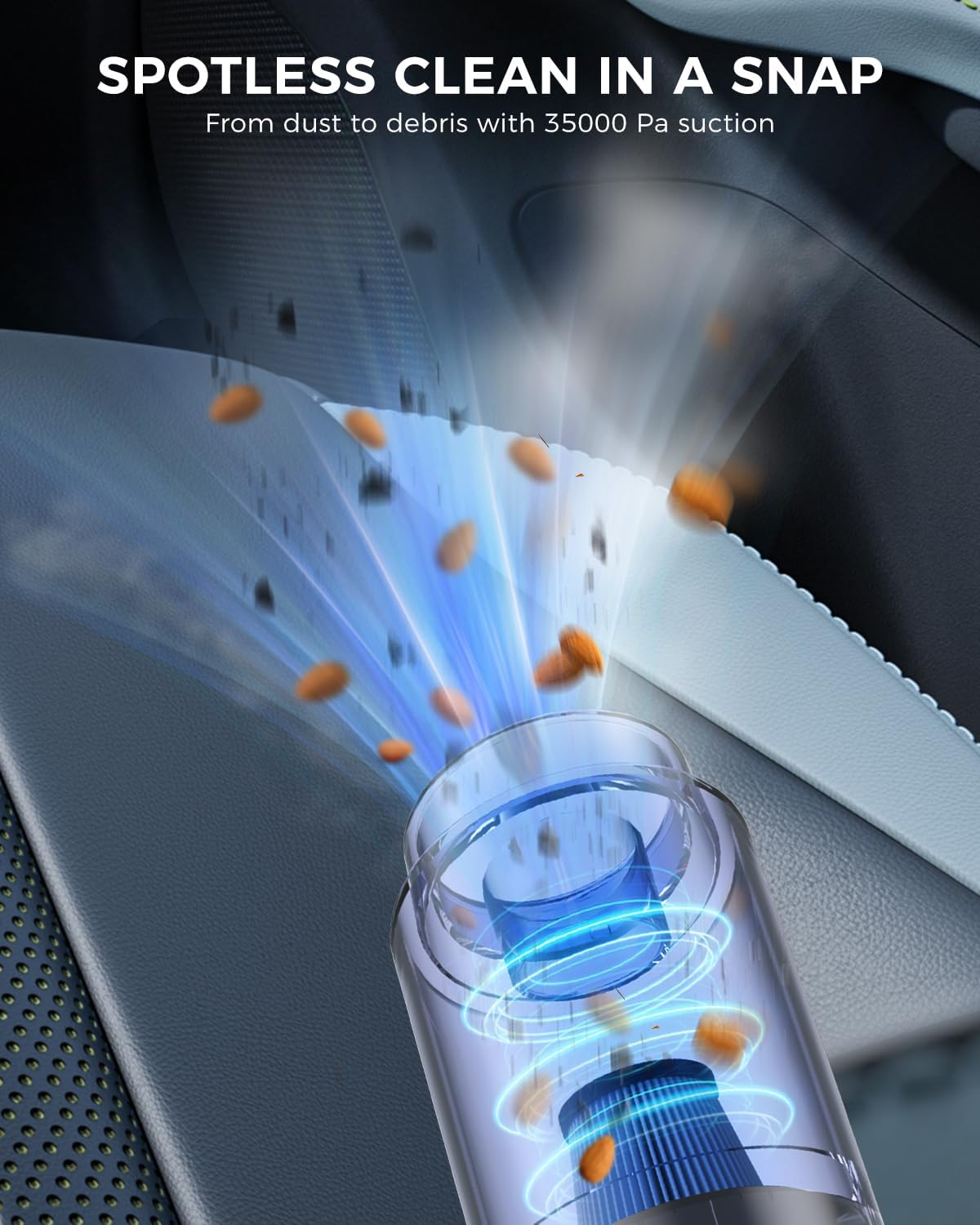Car Vacuum Portable Cordless, 35000PA High Power Suction & Blower, Wireless Handheld Vacuum Cleaner for Car, Home, Office, Pet(Shiny Black)