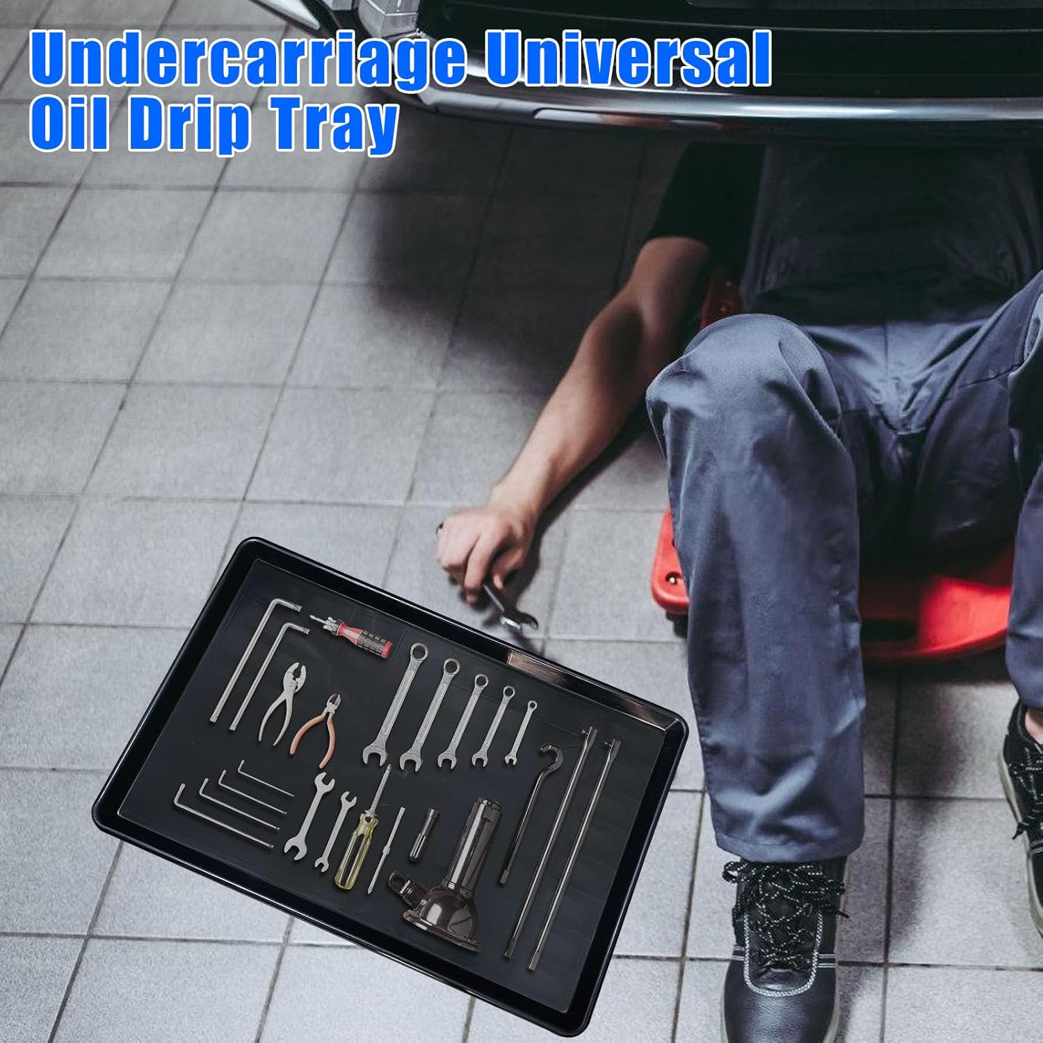 - Clean and Tidy: The large oil drain pan for oil change can be placed under any equipment at risk of leaks, and can also be used as an oil drip collection tray under the car; especially suitable for carpeted rooms and hardwood floors, it is easy to clean, wipe clean, and can be reused, saving you time and energy