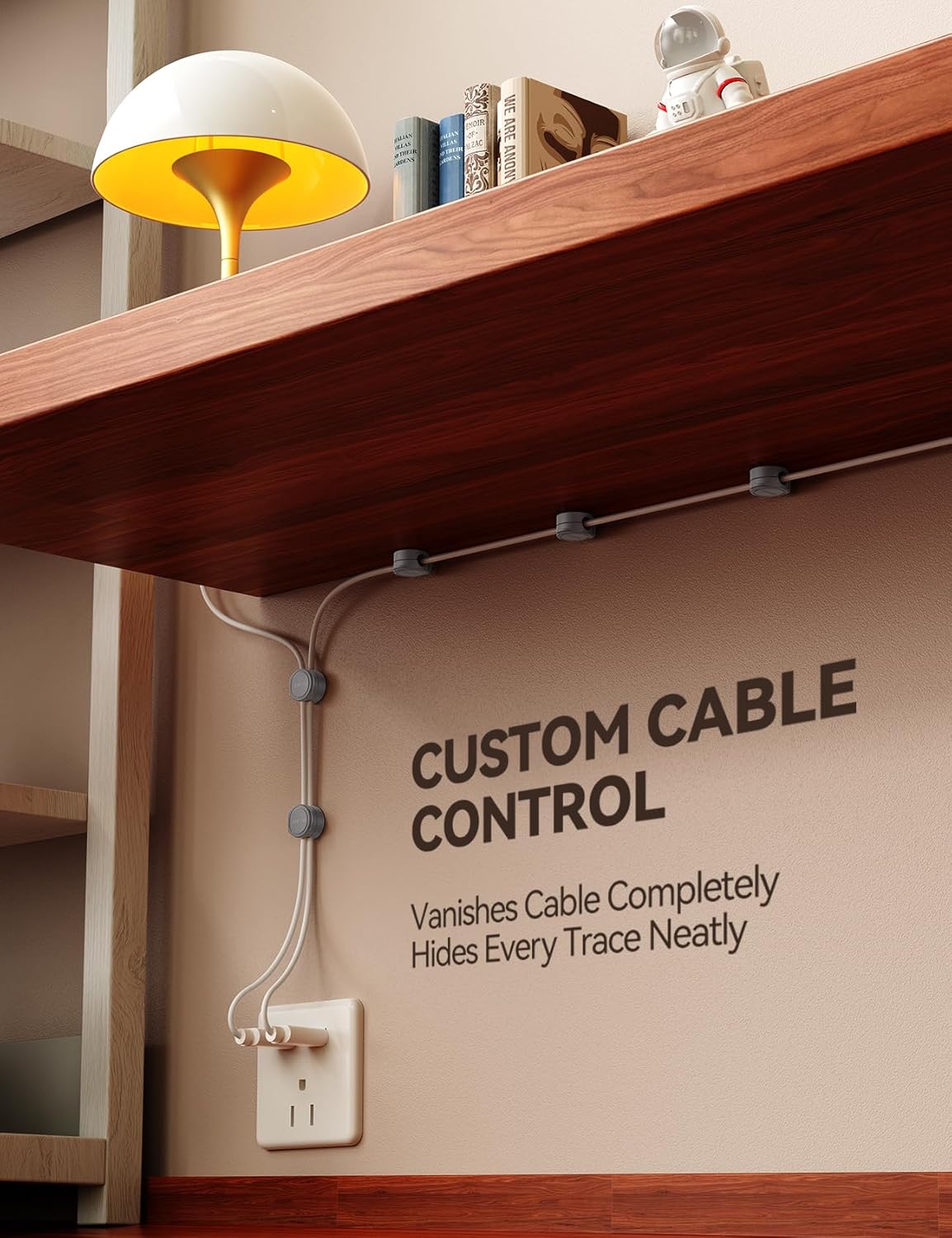 - Space-saving Compact Body Keeps Cords Neatly in Any Narrow Place: A single FLYLEAD wire management effectively secures cables within compact spaces. Multiple FLYLAED wire clips can be combined not only to simultaneously organize cables of varying thicknesses within a single corner, but also to collaboratively design customized cable routing layouts in home corners as you wish