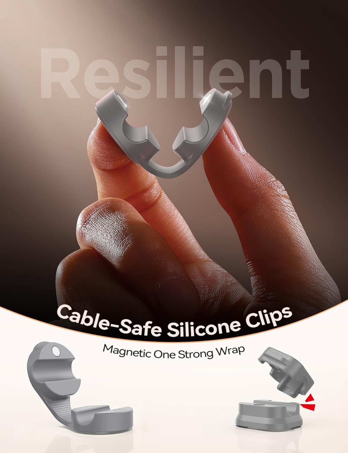 - Special Designed Silicone Magnetic Cable Clips: One-piece silicone molding design FLYLEAD cord organizer with better moldability, the soft silicone material makes this cable organizer more malleable and skin-friendly. After over 10,000 times of tensile tests, the flexible upper and lower joints never broke. With the strongest N55 magnets, covers can be tightly adherent to each other, soft silicone-made FLYLEAD cord holder could embrace cables, which won't squeeze or damage the cables