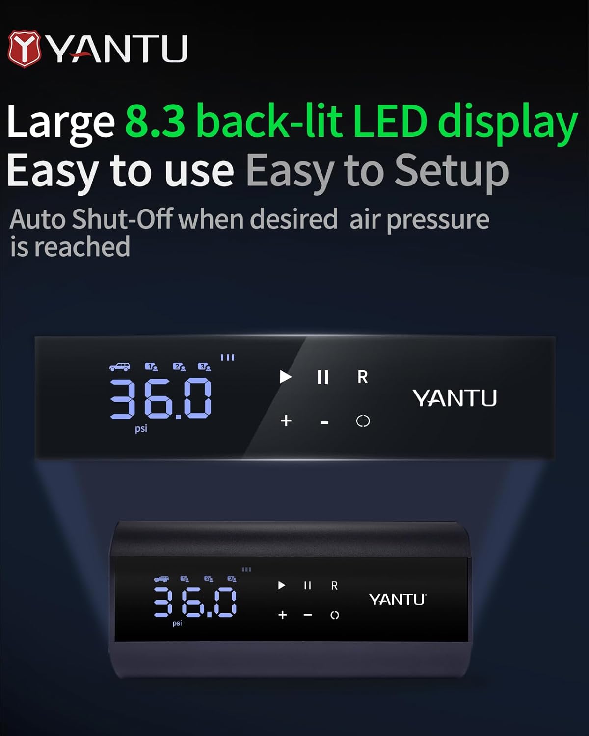 YANTU Dual Cylinder Tire Inflator Portable Air Compressor With 8.3-Inch Large Digital Screen,12V Cordless/battery powered Car Air Pump For Car Tires,Electric Auto Shut Off for Truck/Bike/Pickup/Moto