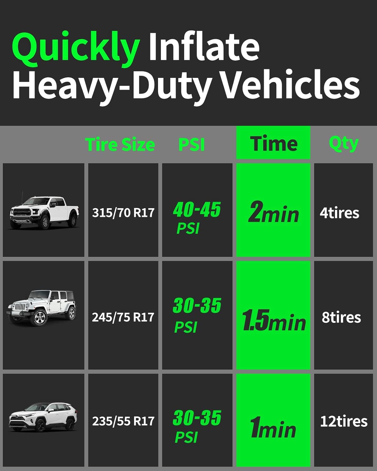 - 【Ultra-Fast Inflation with Dual Cylinders】 - Experience unparalleled speed with our tire inflator portable air compressor. Equipped with a metal dual-cylinder design, it delivers 40% faster inflation compared to single-cylinder models. Fully inflate a tire in just 2 minutes, making it ideal for off-road vehicles, trucks, SUVs, motorcycles, bicycles, and more. Dual-Cylinder Design ensures powerful and efficient performance every time