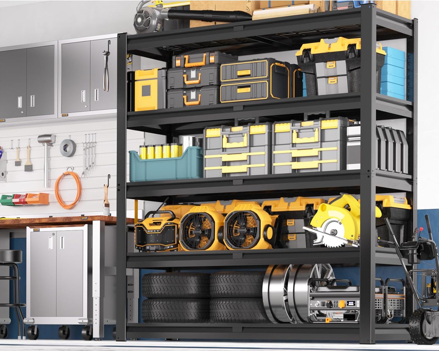 - 【Easy Assemble within 10 Minutes 】The metal storage shelves adopt a bolt-free interlocking design and can be quickly assembled in just 10 minutes. It comes with a rubber mallet and gloves to make the installation process simple and efficient. Tips: Evenly distribute the items on each shelf to ensure the stability and load-bearing capacity of the garage shelves.