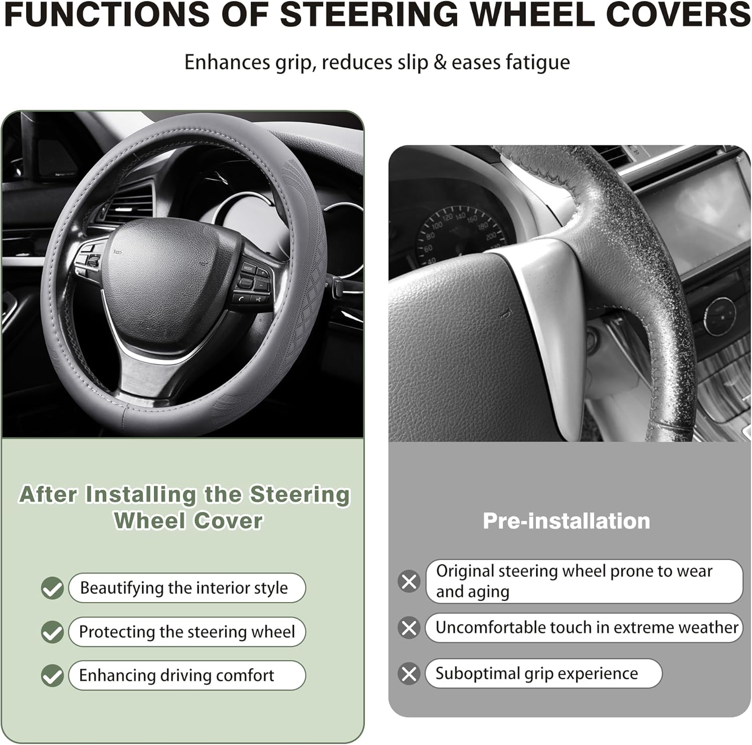 - 【Suitable Size】: Enhance the appearance and feel of your car's interior with our leather steering wheel cover.This steering wheel cover is designed to universally fit wheels ranging from 14.5 to 15 inches.Please measure the size of the steering wheel before purchasing.