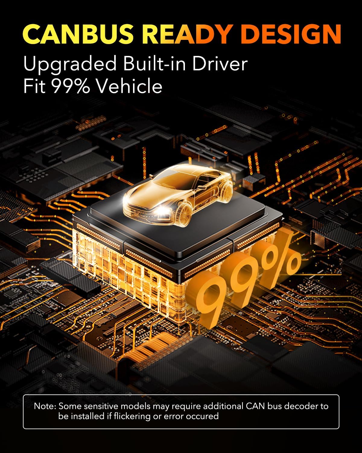 - 【Advanced Compatibility】 – Built-in intelligent IC driver, no radio interference, CANBUS ready for 99% vehicle systems. Say goodbye annoying flickering and code errors when driving. Amazon filter system may not be 100% accurate, please check the user manual and the bulb size to verify the compatibility before purchasing.