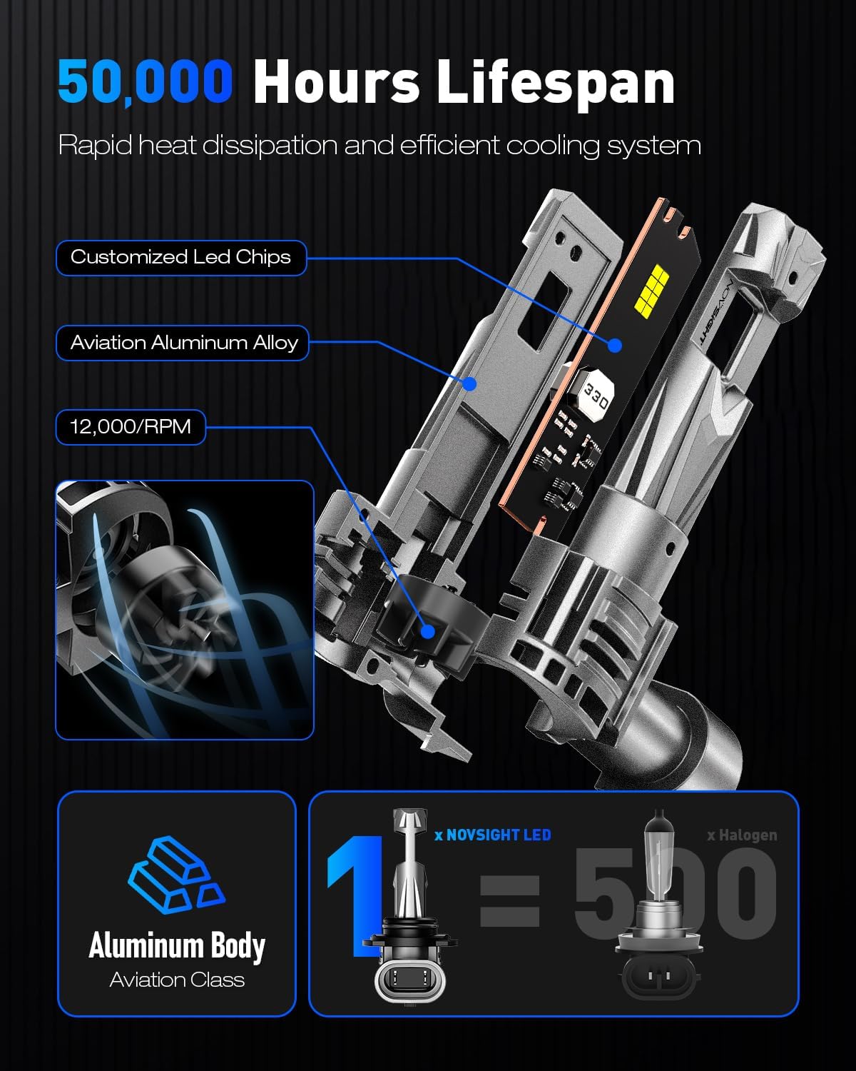 NOVSIGHT 9005 9006 Fog Light Bulbs - 80000LM 6500K Cool White, 1:1 Design Easy Installation, Non-Polarity Plug-and-Play, Pack of 4